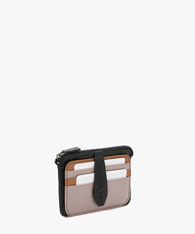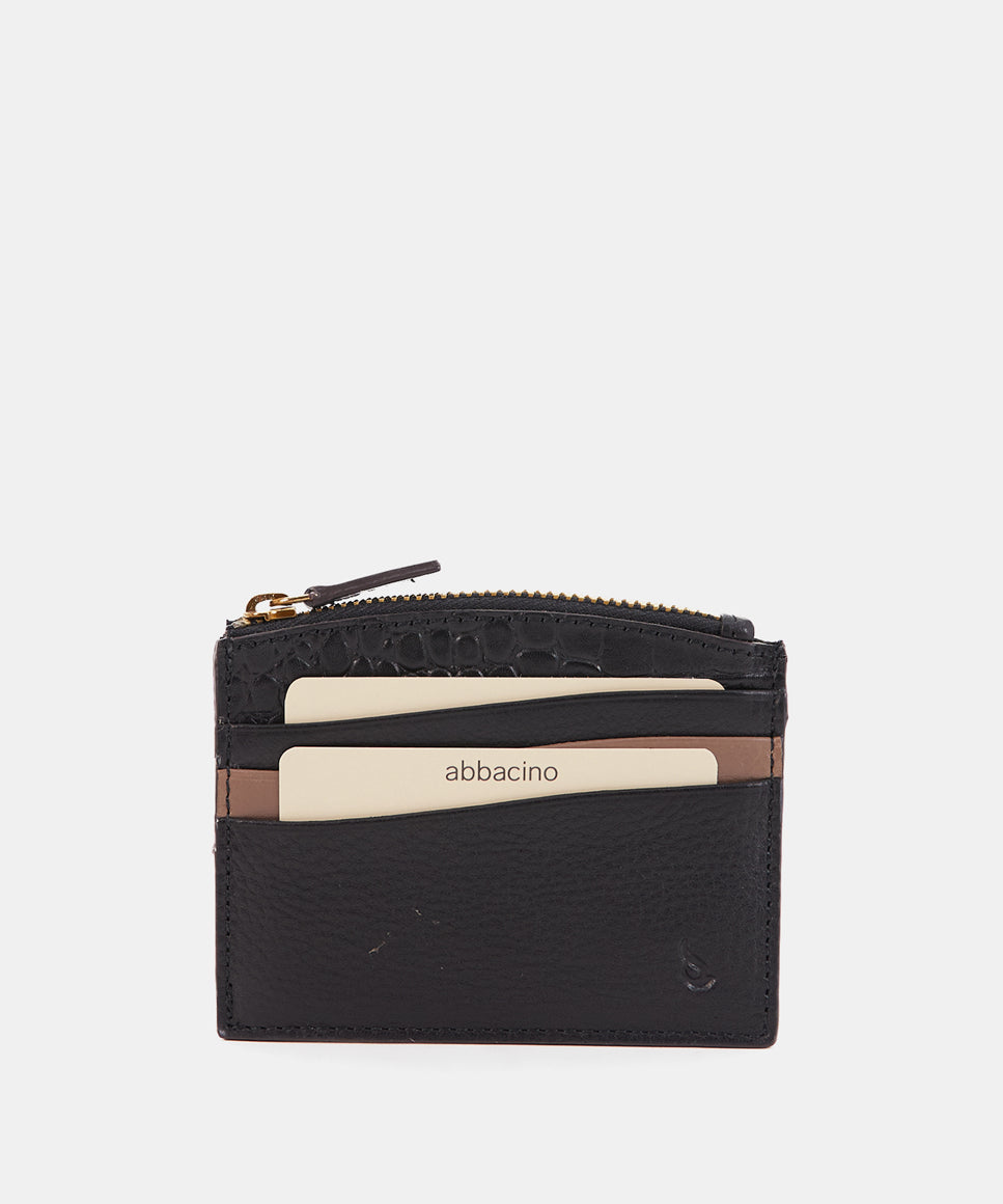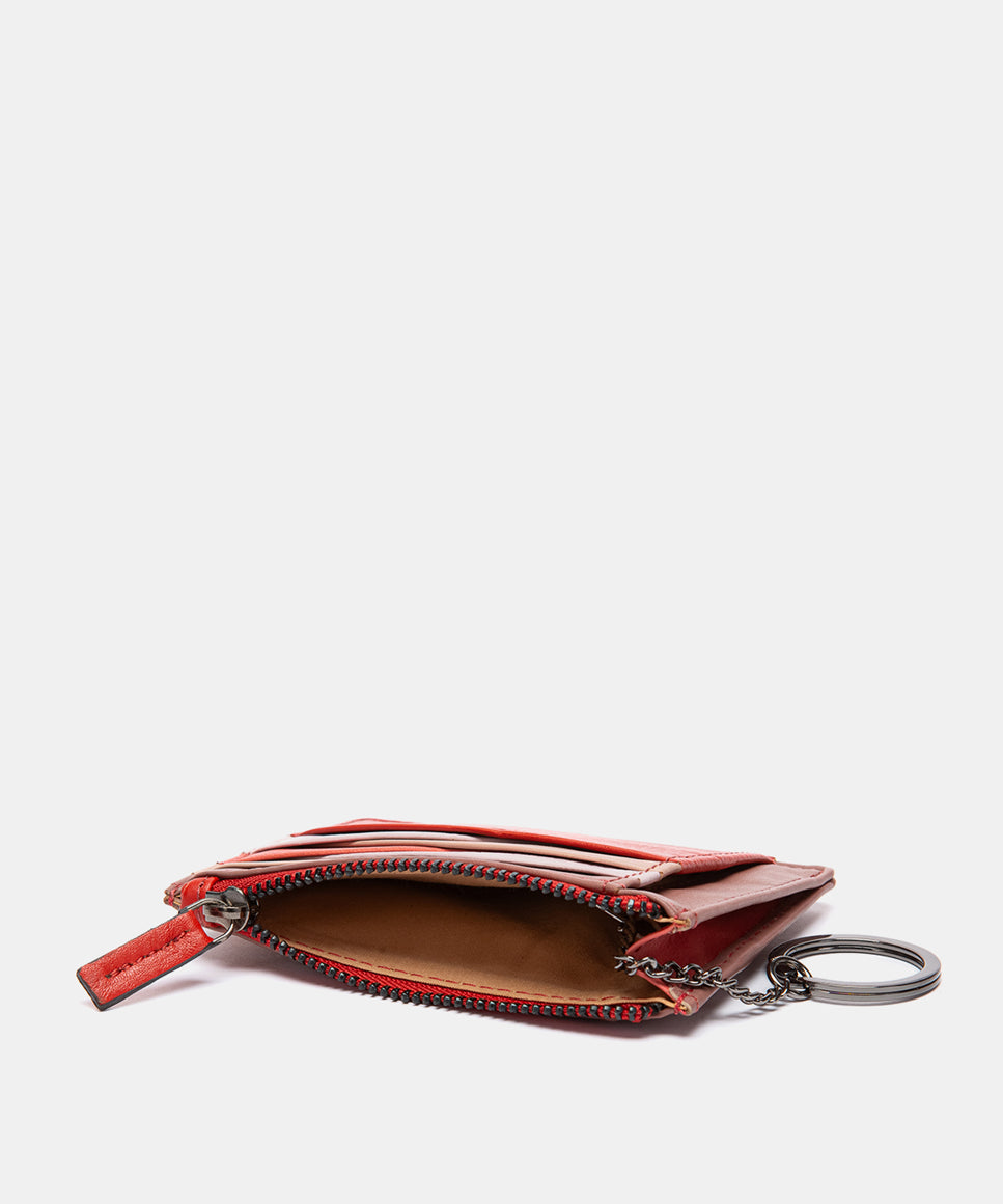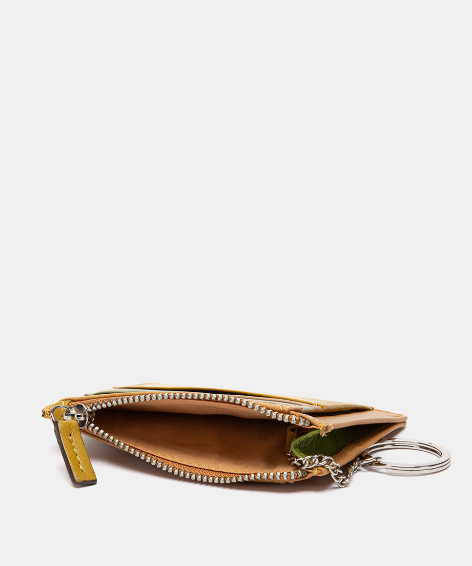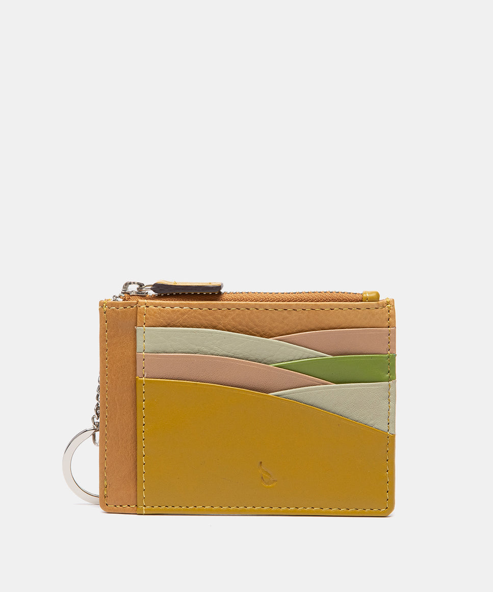 Tarjetero-monedero de mujer en piel troquelada amarilla