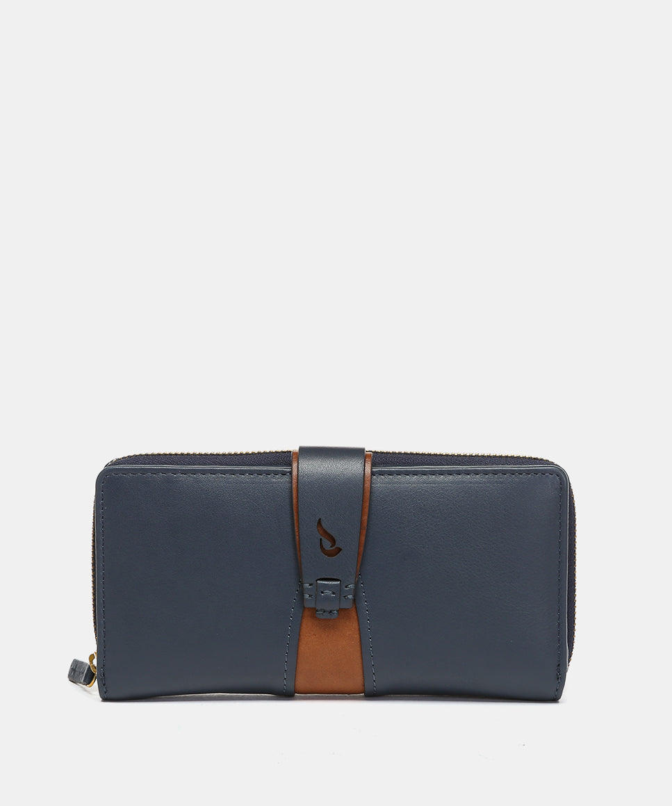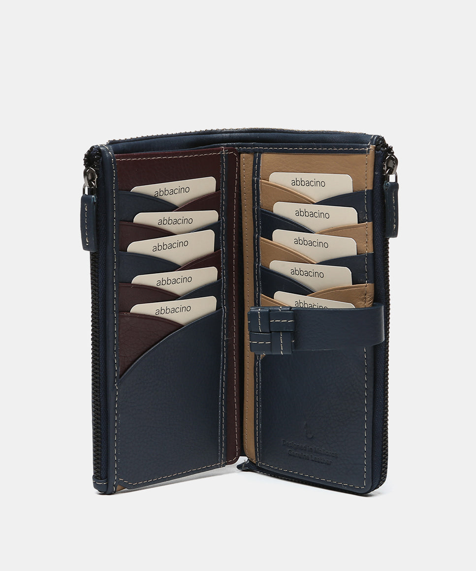 Große blaue Lederbrieftasche