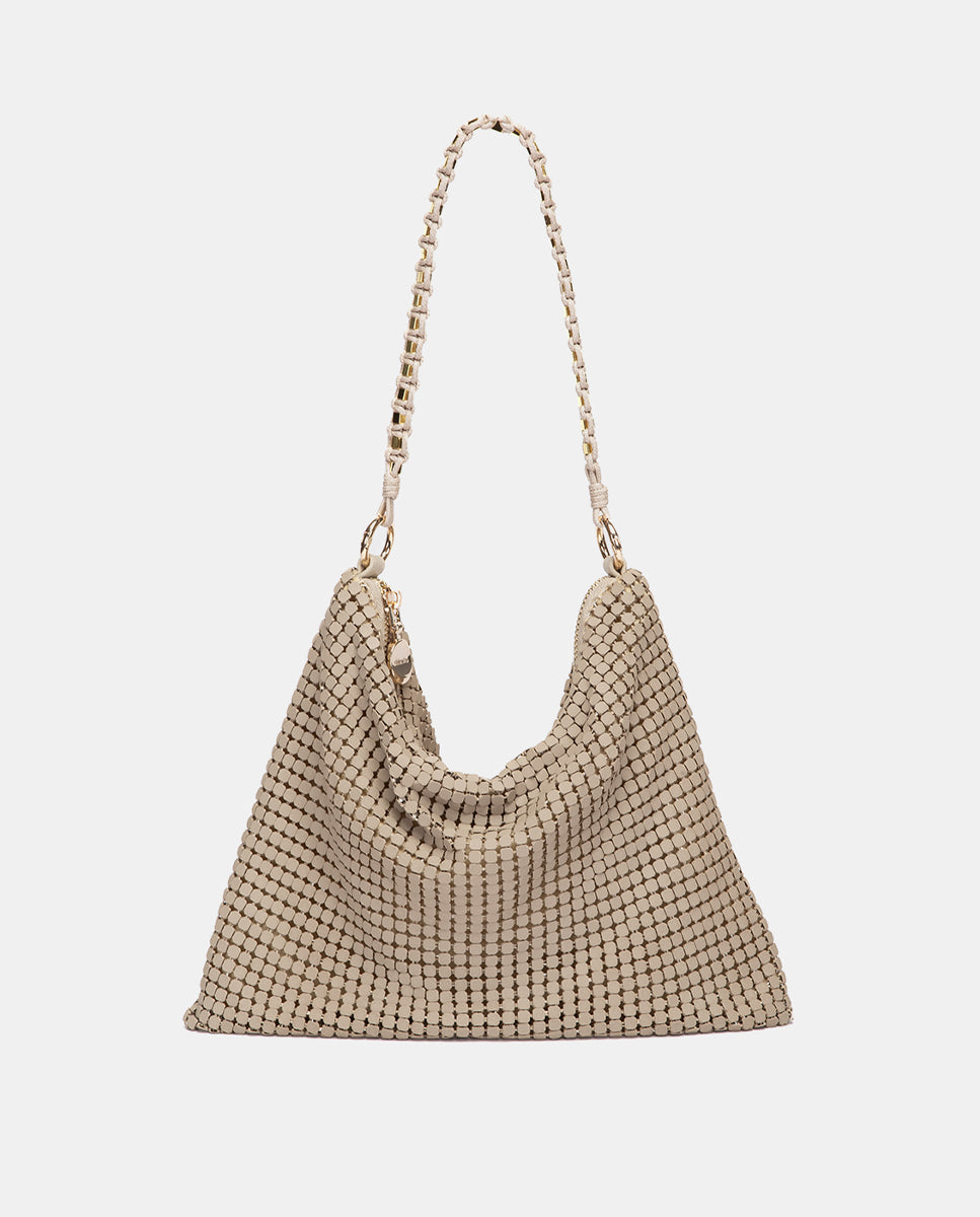 Bolso de fiesta en malla metálica beige