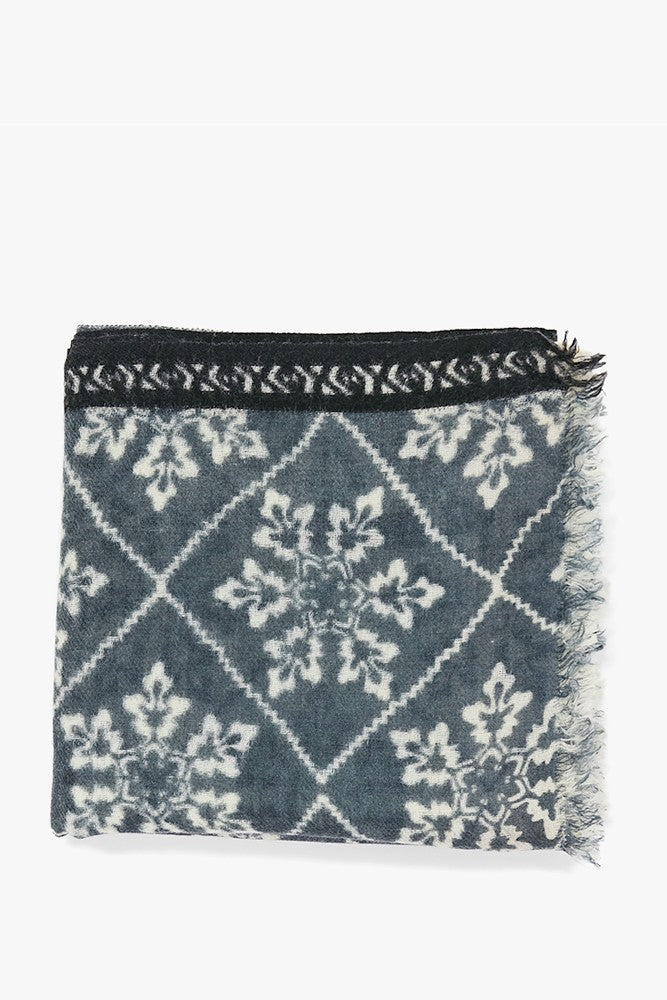Damentuch aus Wolle mit geometrischem Muster in Grau.
