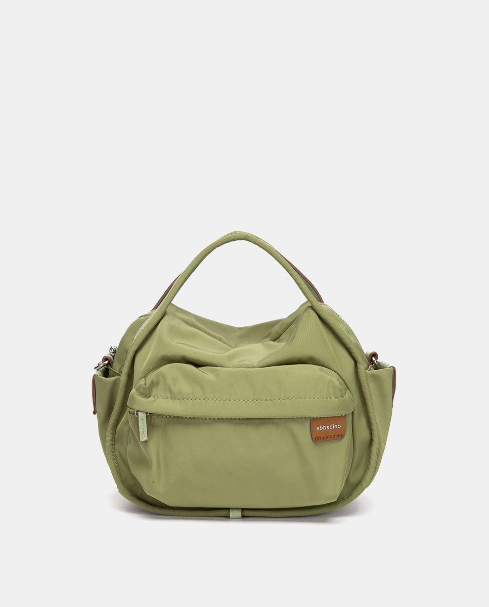 Bandolera confeccionada en tejidos reciclados, ligera y fluida, con tacto suave y gran capacidad, ideal para el uso diario. Sus principales características son: