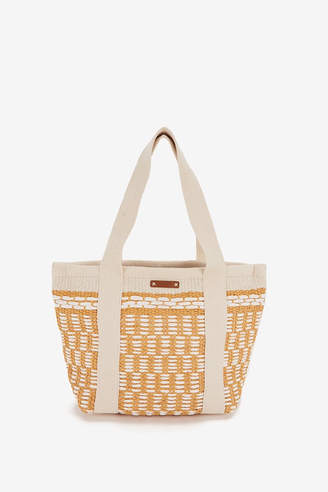 Damenkorb mit mediterraner Inspiration, der verschiedene Farbtöne und Texturen kombiniert. Ein sehr vielseitiges Design, das es dir ermöglicht, ihn zum Strand, ins Büro oder zu einem Abendspaziergang mitzunehmen. Die Hauptmerkmale sind: