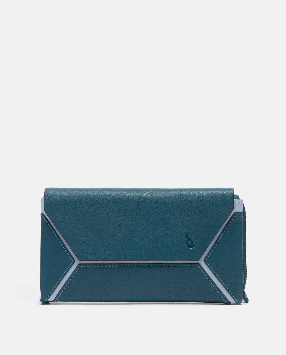 Große Damenbrieftasche aus Leder mit einem Design, das sich durch die geometrische Silhouette aus der Kombination seiner Muster auszeichnet und einen modernen und raffinierten Stil bietet. Seine Hauptmerkmale sind:
