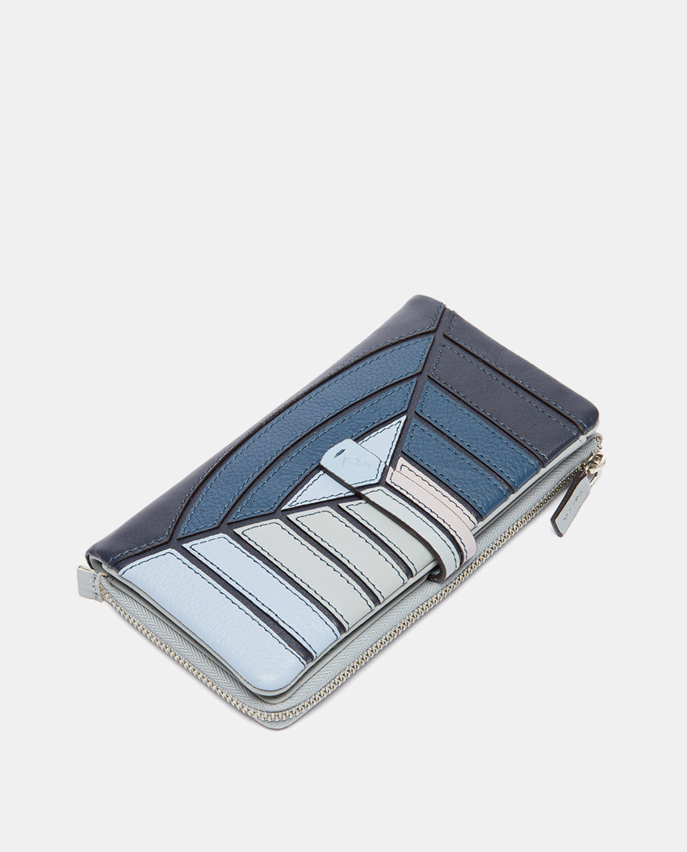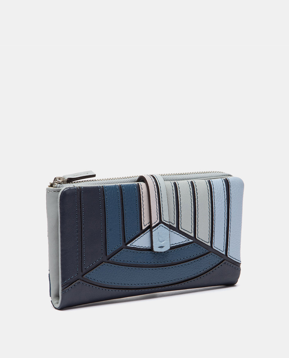 Cartera grande de piel con diseño de patchwork en cortes geométricos, cuidadosamente ensamblados para crear una composición única y artesanal. Sus principales características son: