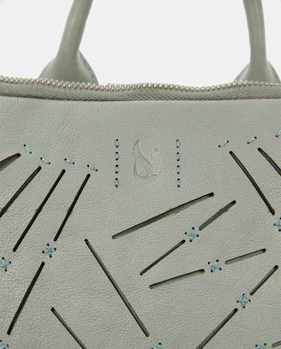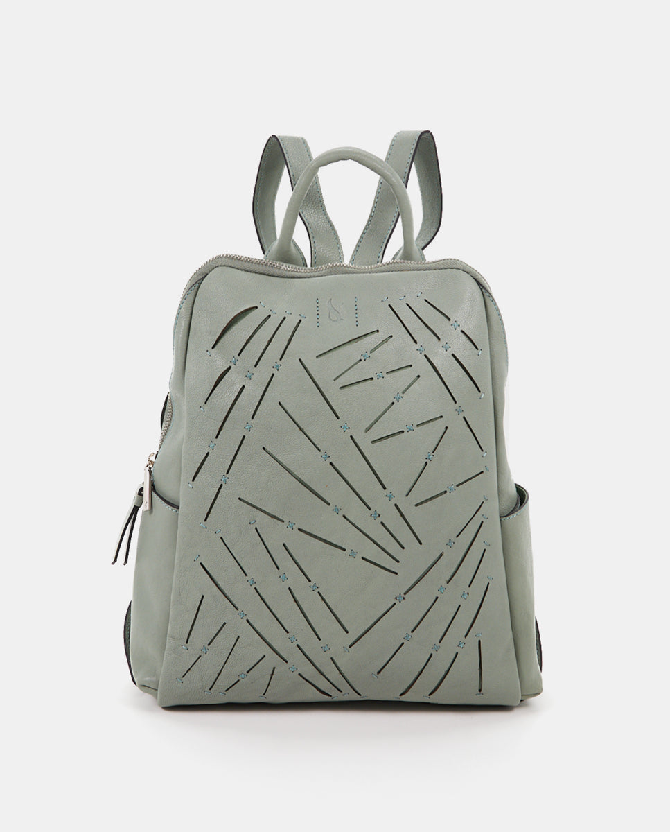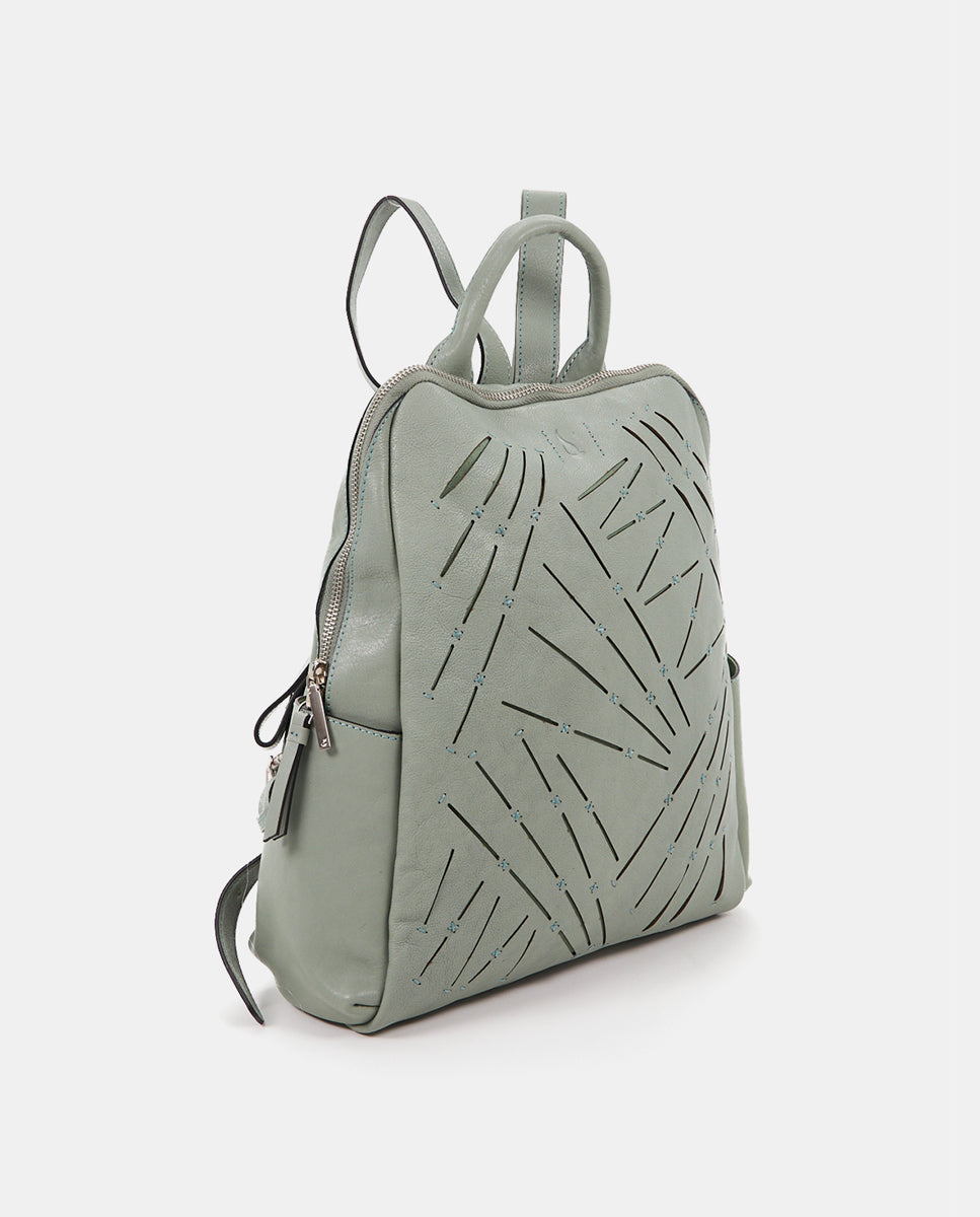 Ein Rucksack aus Premium-Leder, der sich durch seinen gestanzten geometrischen Druck auszeichnet. Geräumig und originell, lässt es die für die Marke so charakteristische mediterrane Essenz wieder aufleben.