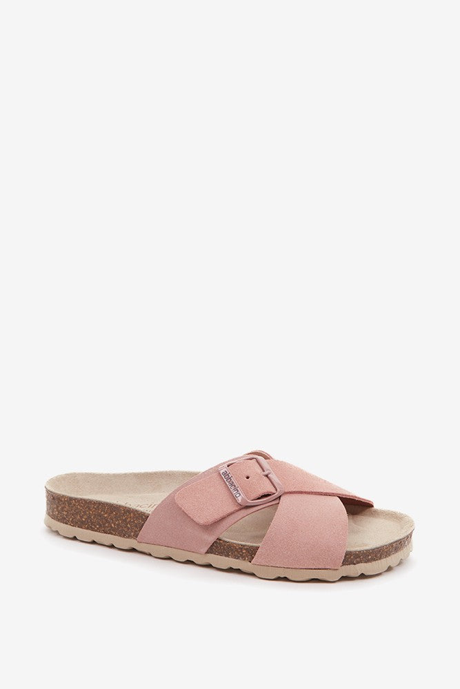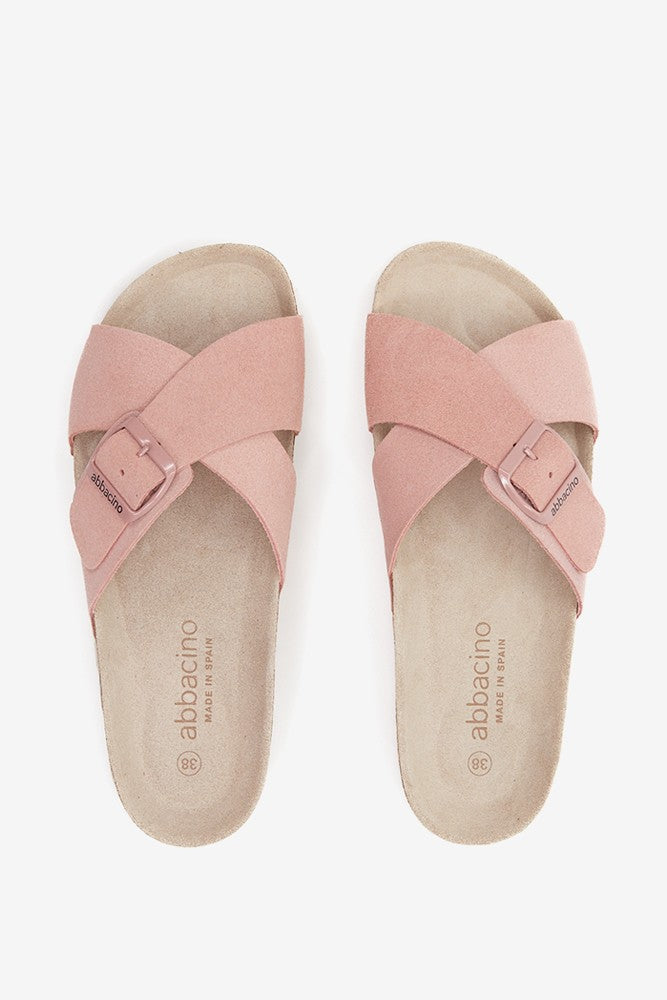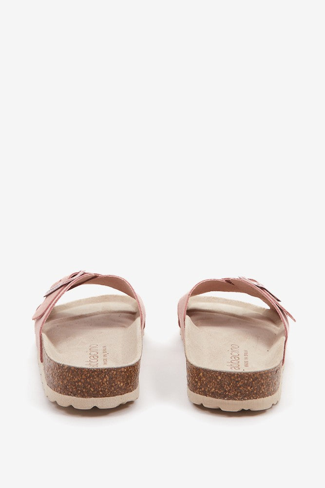 Flache Damen-Sandale mit Schnalle in Rosa.