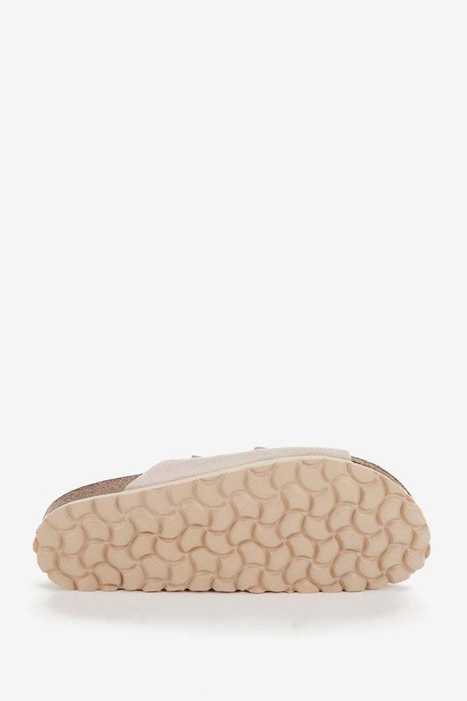 Damen BIO Sandalen aus Leder mit doppelter Schnalle. Ein neuartiges und originelles Design, ideal um deinen Sommerlooks eine lässige und unbeschwerte Note zu verleihen. Dieses Modell passt sich dank der verstellbaren seitlichen Schnallen perfekt an den Fuß an, und die gepolsterte Sohle aus Veloursleder sorgt für zusätzlichen Komfort und Bequemlichkeit Schritt für Schritt (EVA-Sohle).