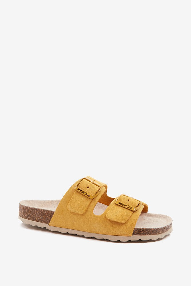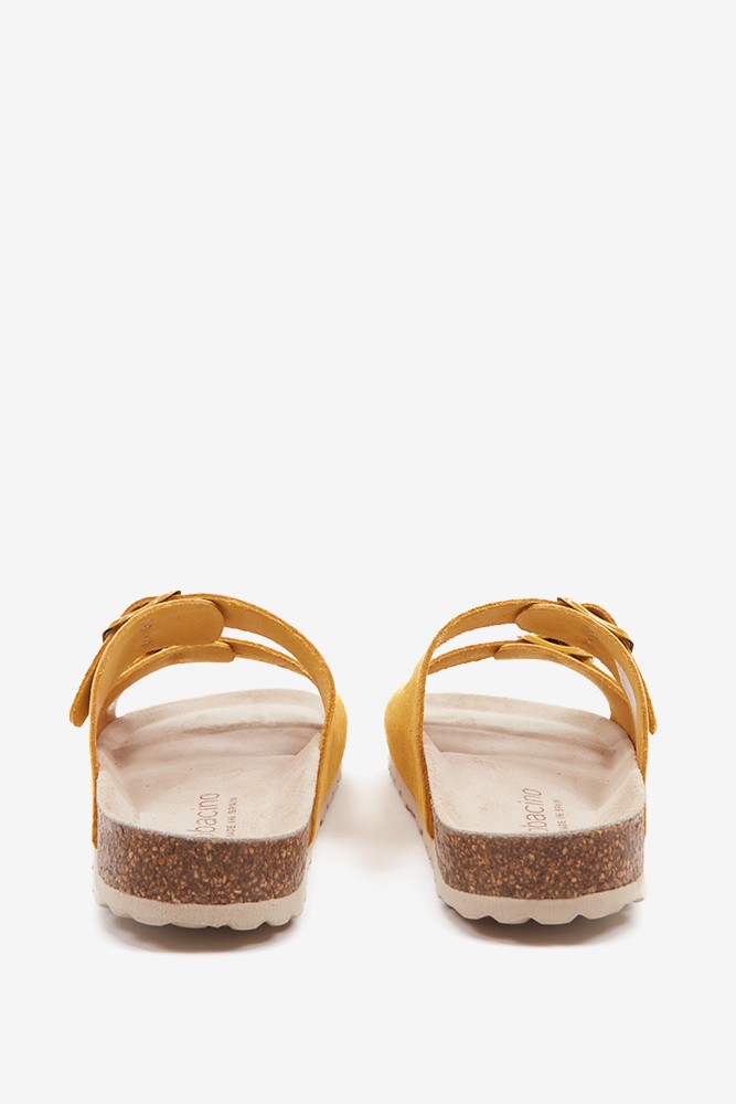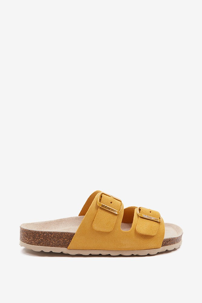 Flache Damen-Sandalette aus Wildleder in Amber.