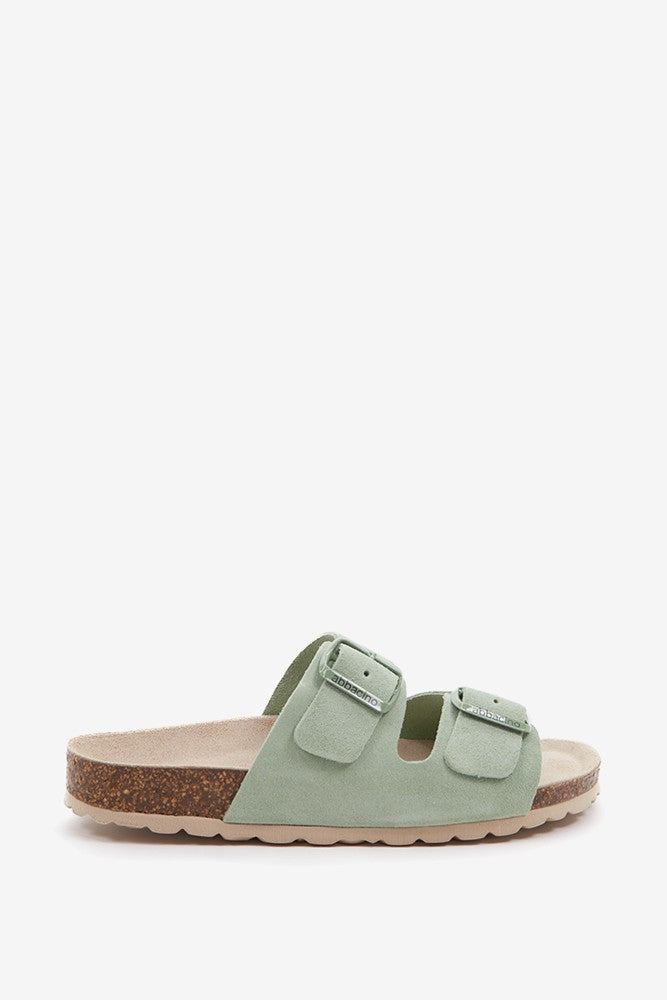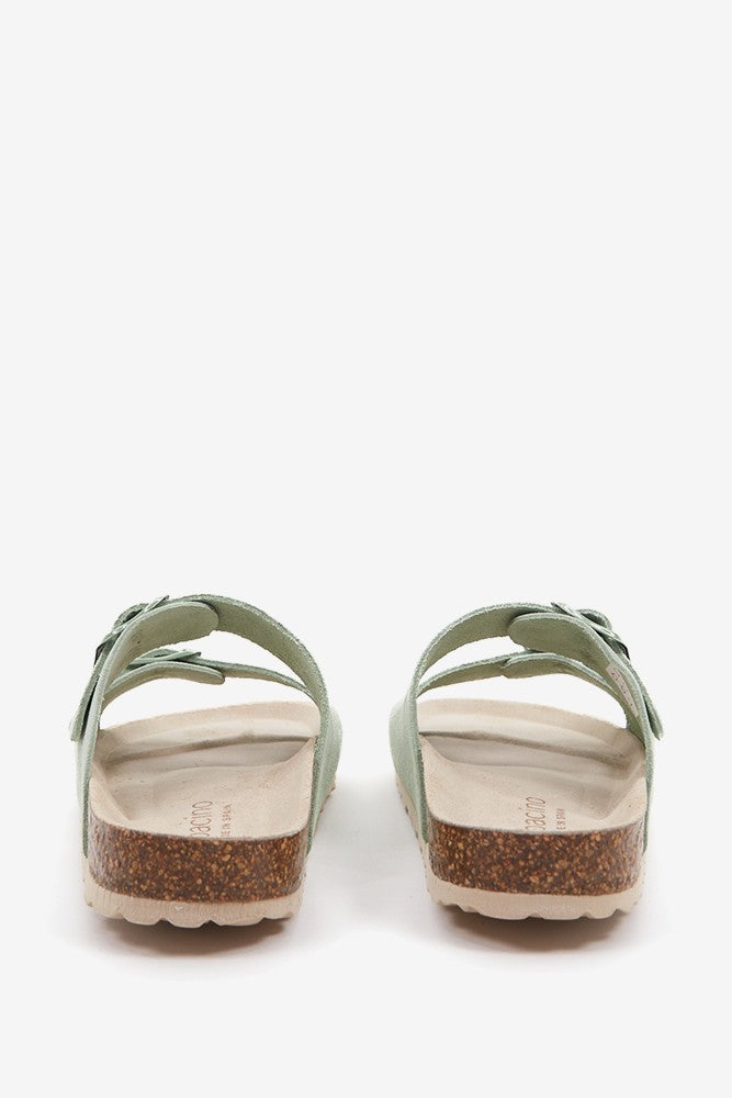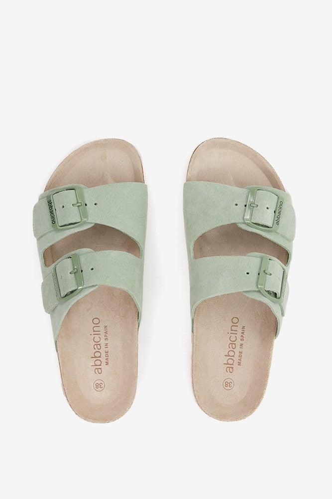 Damen-Sandalen aus Veloursleder mit Schnallen. Ein klassisches Design, ideal, um Ihren Sommerlooks einen lässigen und ungezwungenen Touch zu verleihen. Dieses Modell passt sich dank der verstellbaren seitlichen Schnallen perfekt an den Fuß an. Zudem sorgt die gepolsterte Veloursledersohle für zusätzlichen Komfort und Bequemlichkeit Schritt für Schritt (EVA-Sohle).