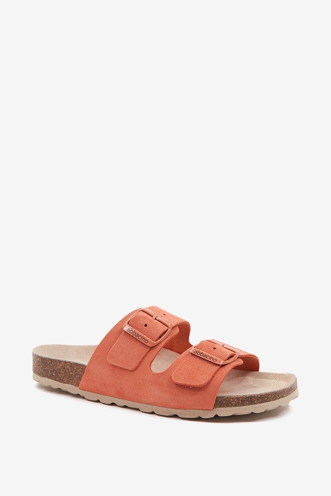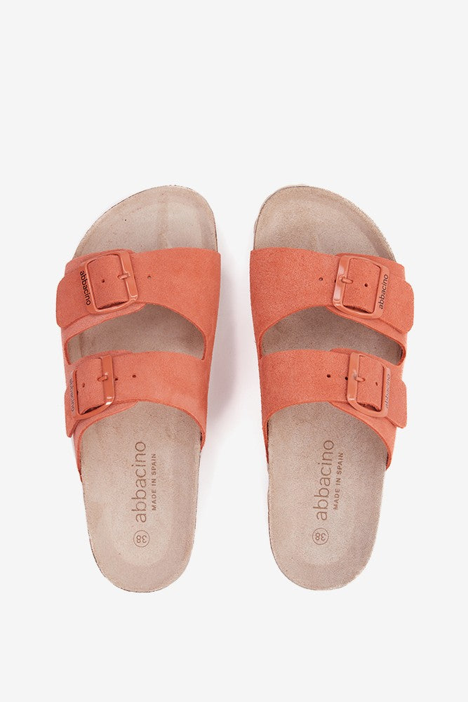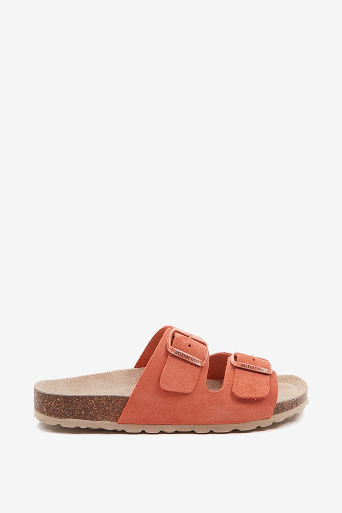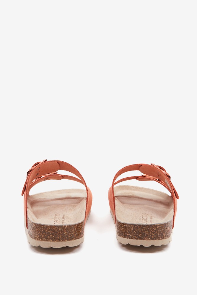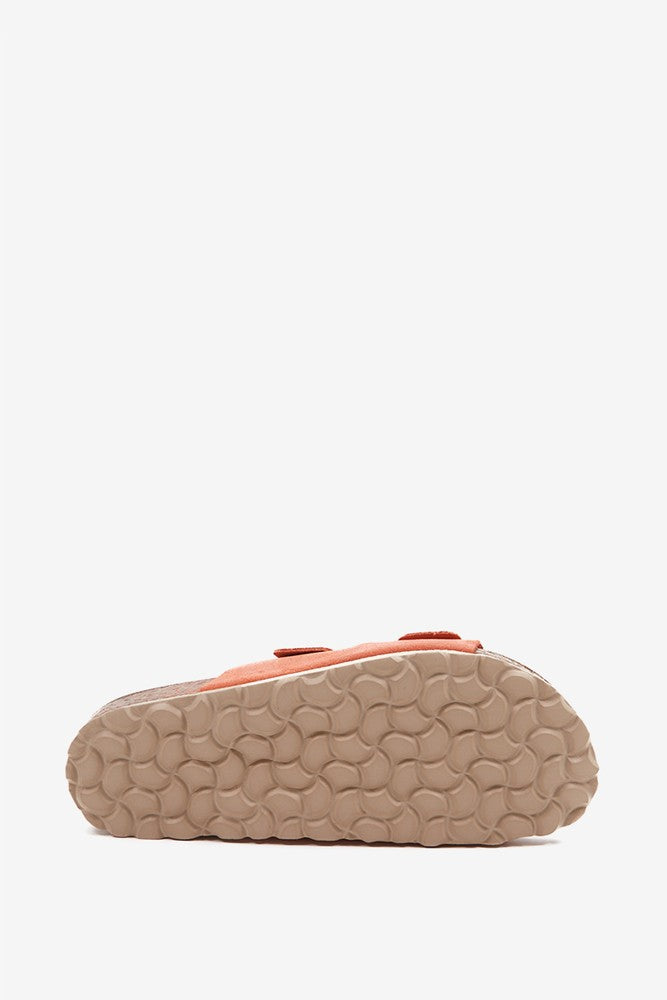 Flache Damen-Sandale aus Wildleder in Orange.