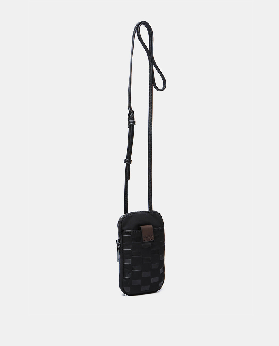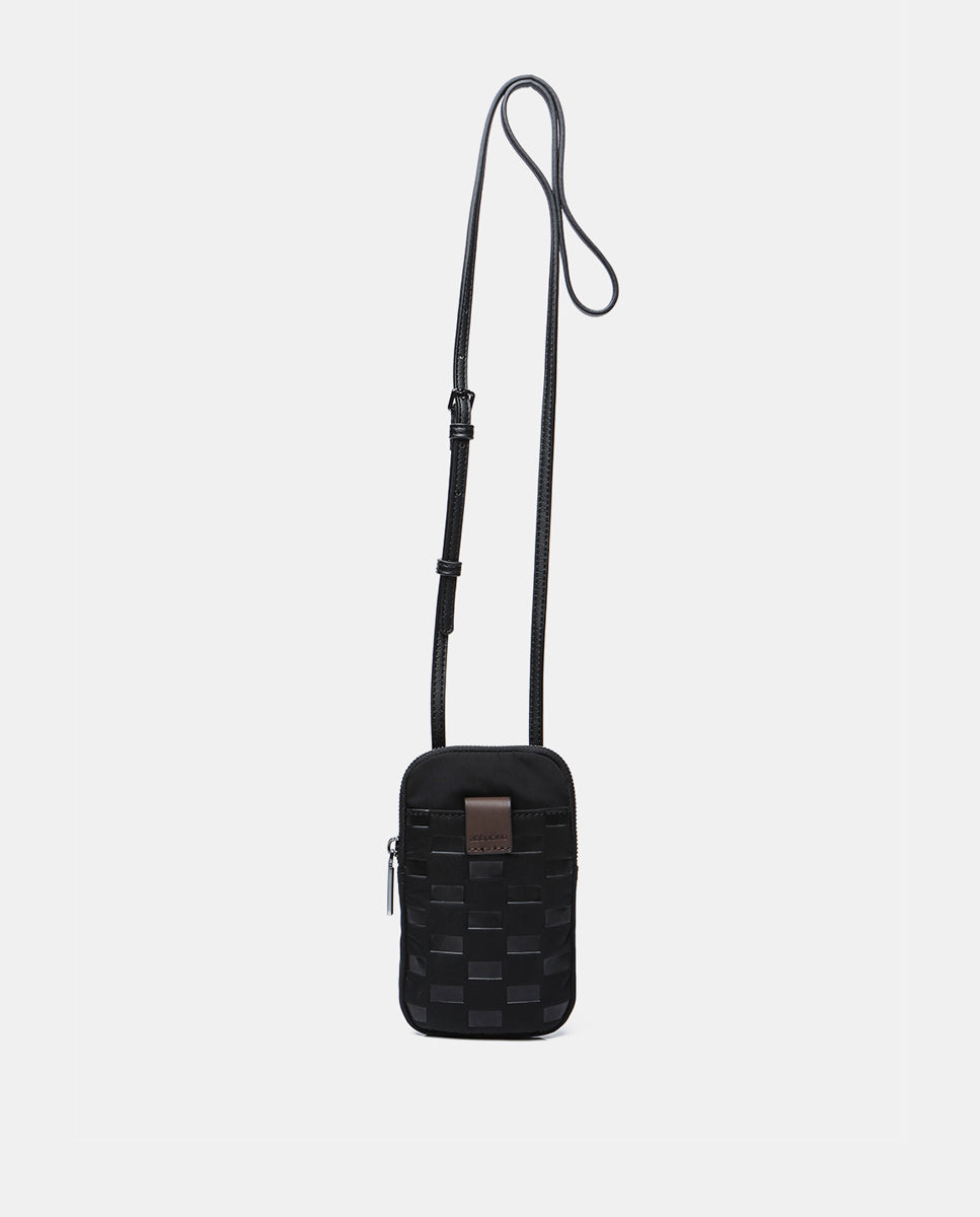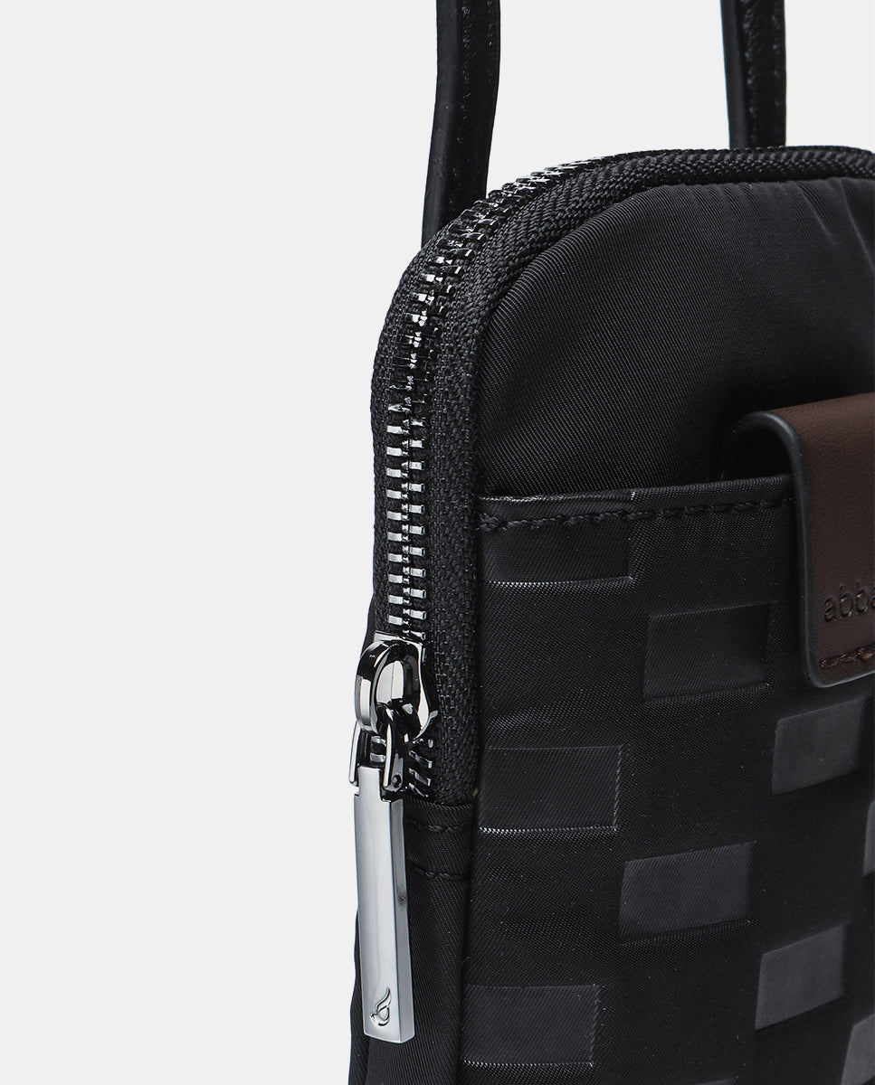 Damentasche für das Handy aus schwarzem, gepolstertem Nylon.