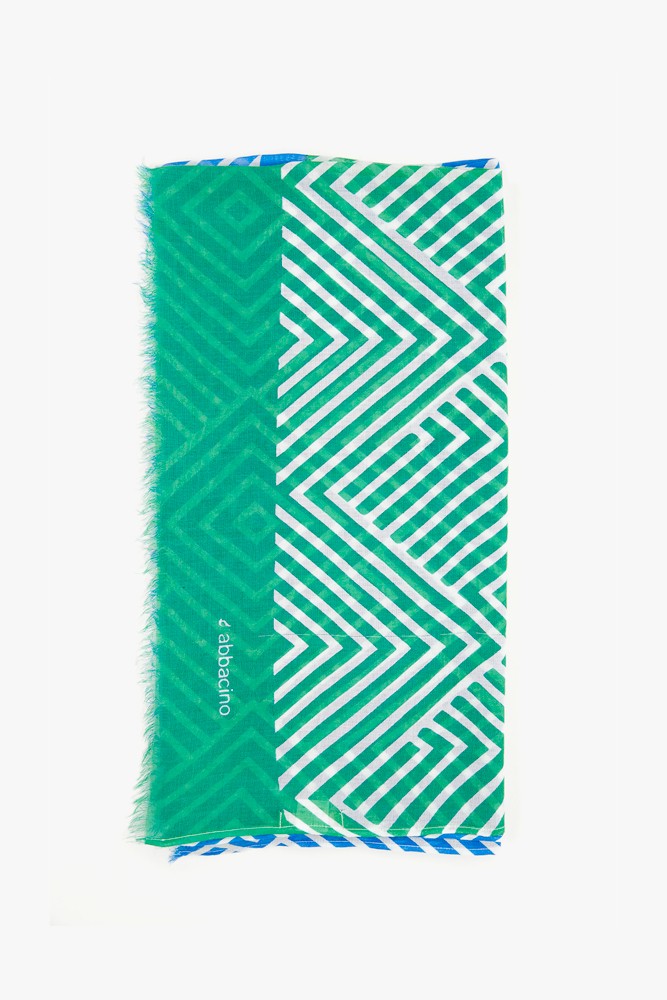 Damentuch aus Viskose mit einem schönen geometrischen Muster. Ein Design, das durch seine Originalität und die Kombination lebendiger und energischer Farben besticht, perfekt für die Sommermonate. Die fransigen Kanten verleihen ihm einen aktuellen und lässigen Stil. Der Stoff ist sehr leicht und frisch.