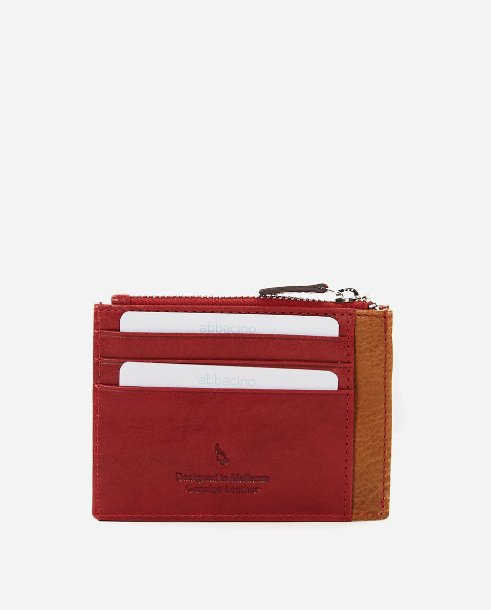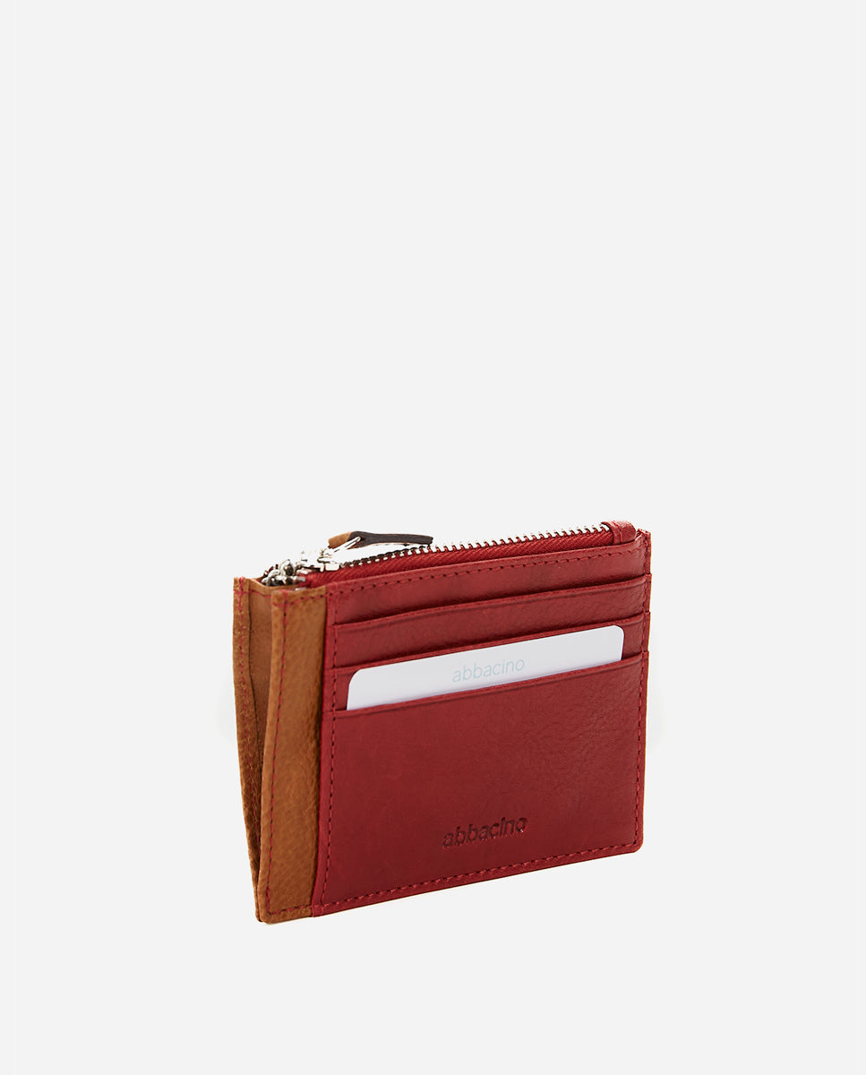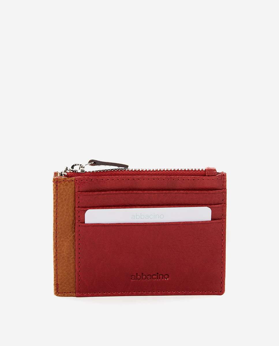 Damen Kartenetui und Geldbörse aus rotem Leder.