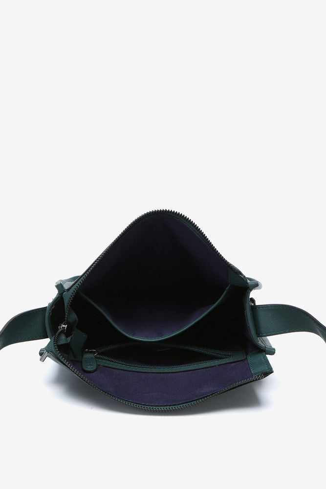 Grüne Leder-Umhängetasche.