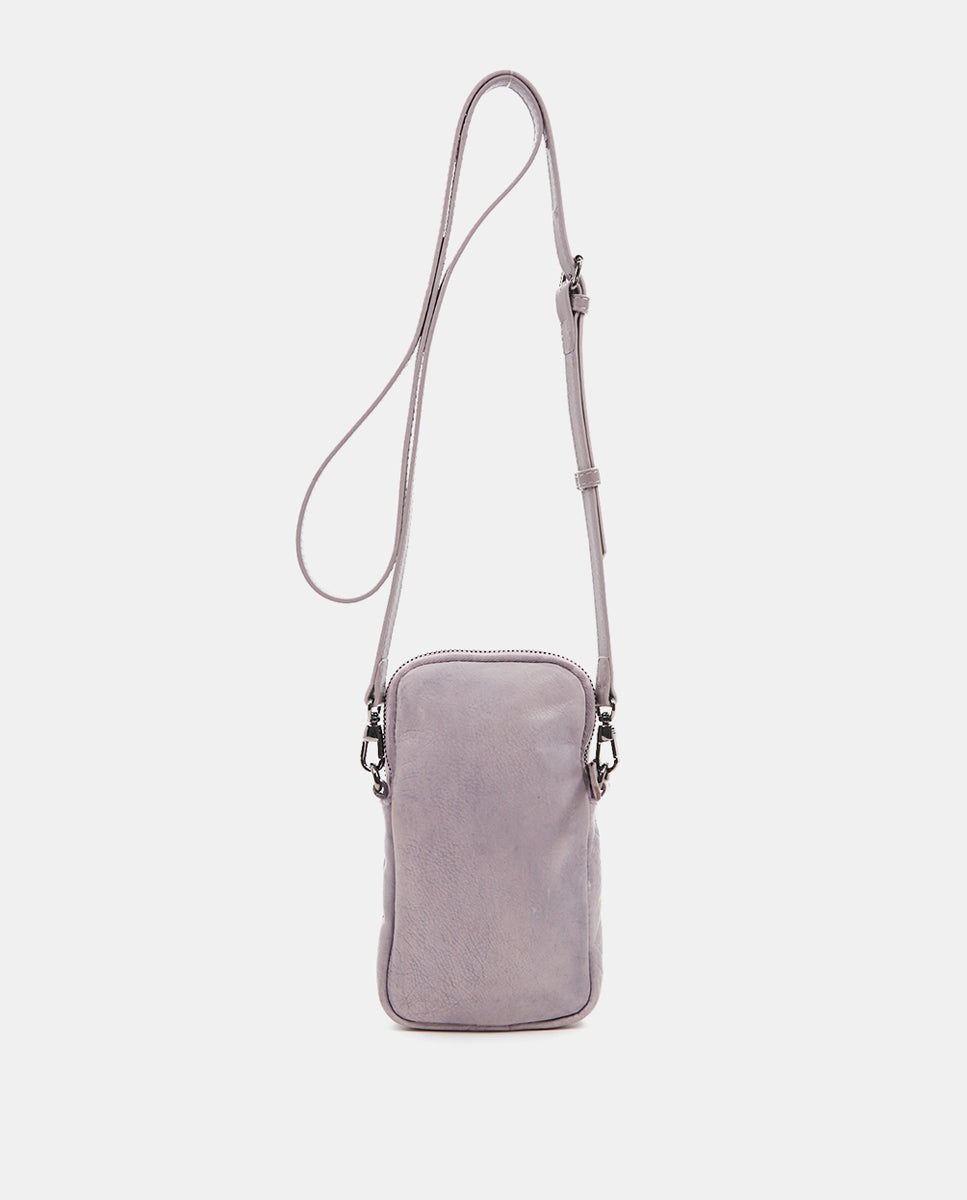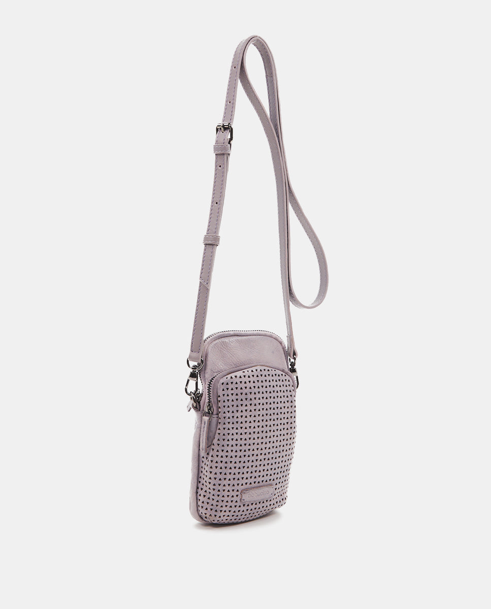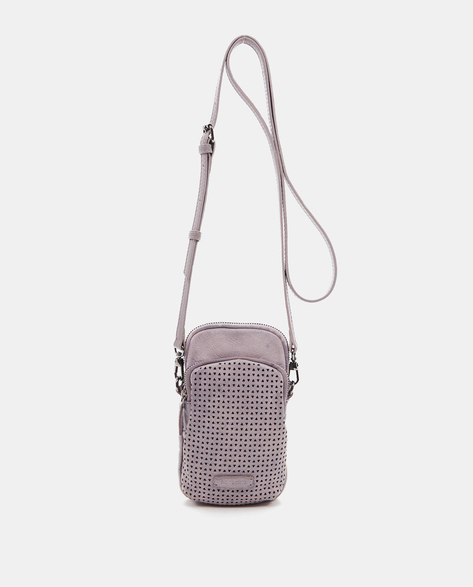 Handytasche aus gestanztem Lavendel-Leder.