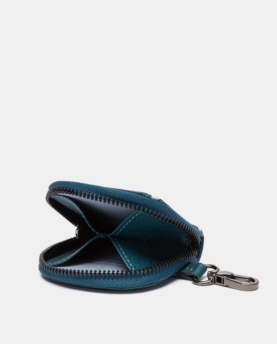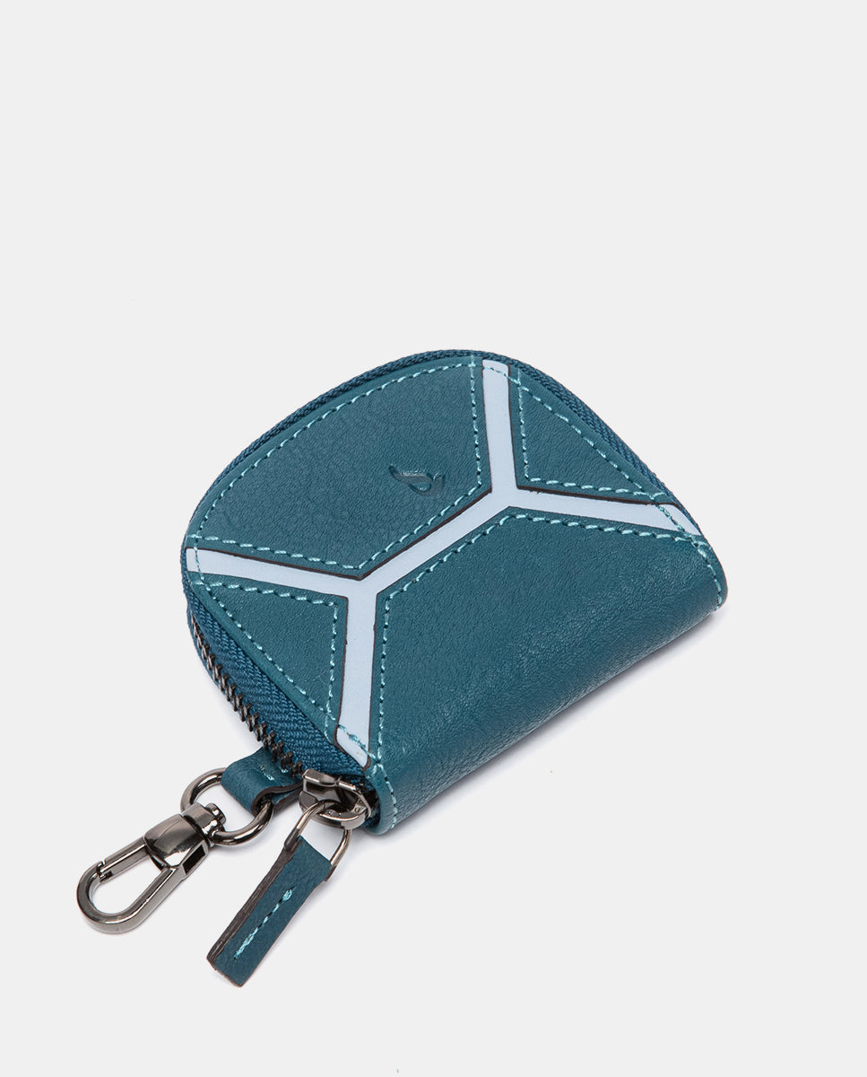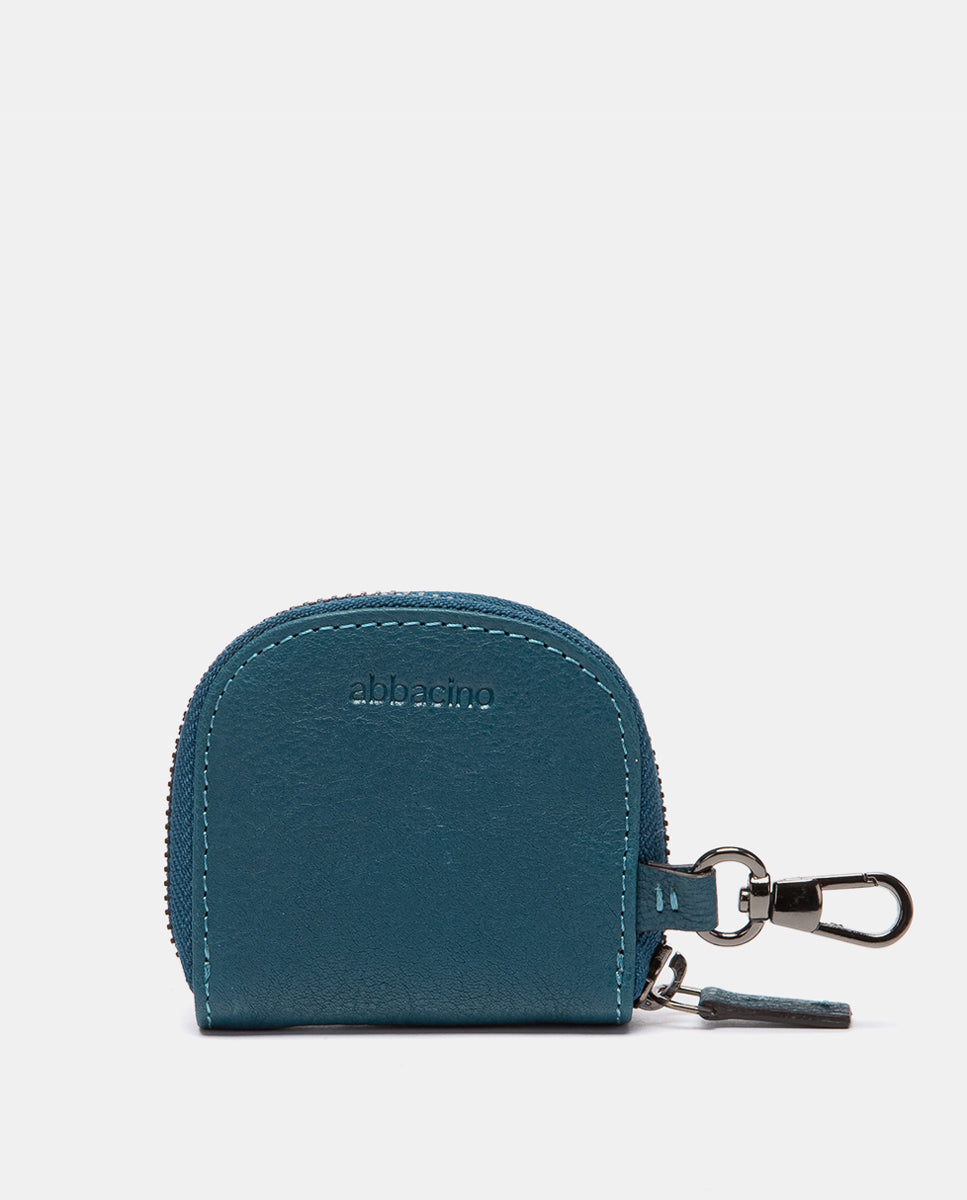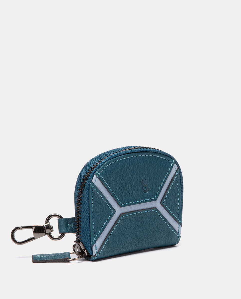 Monedero en piel circular azul