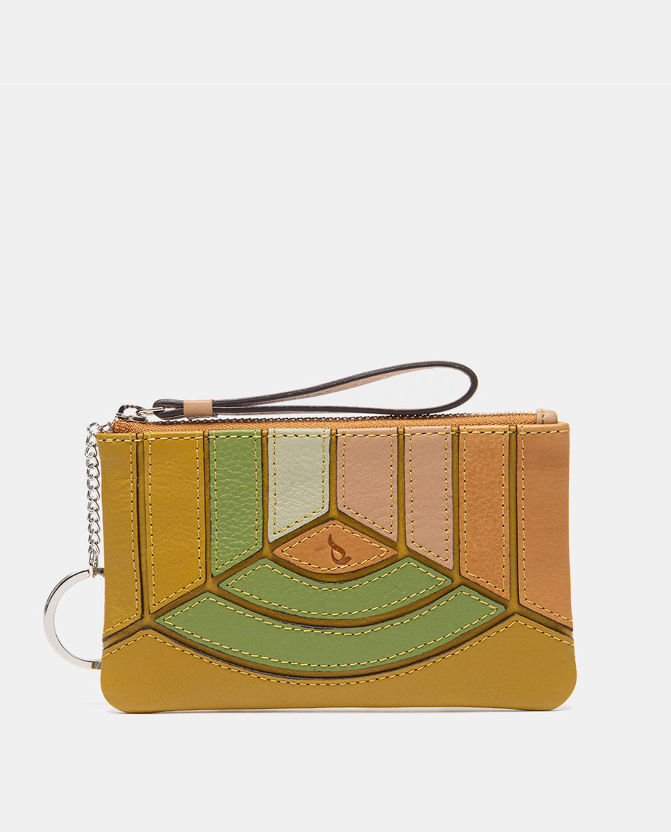 Monedero de piel con diseño de patchwork en cortes geométricos, cuidadosamente ensamblados para crear una composición única y artesanal. Sus principales características son: