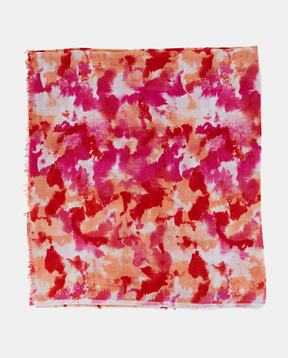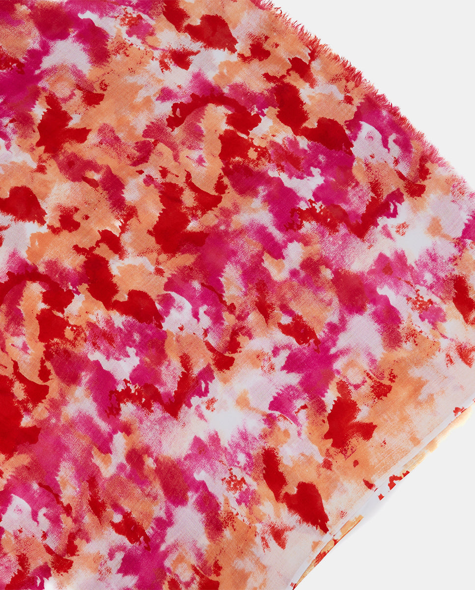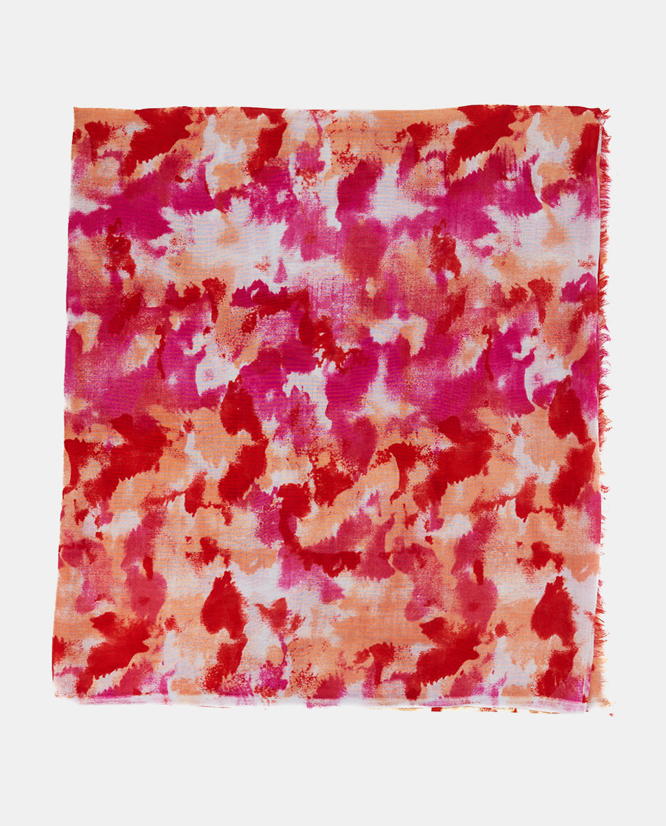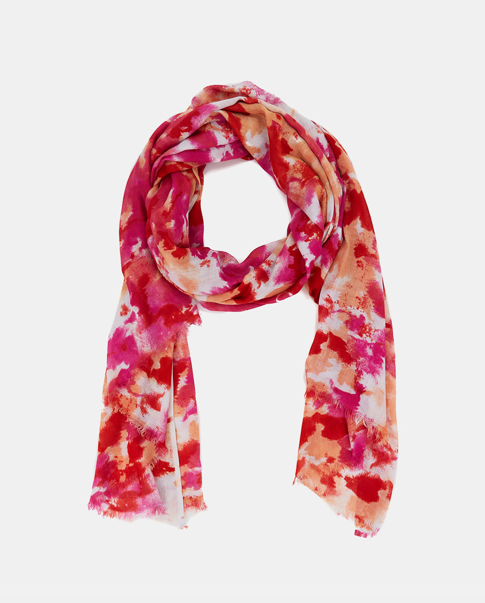 Pañuelo de mujer con estampado abstracto confeccionado con viscosa. Este modelo combina diferentes tonalidades, creando un bonito y vistoso juego de color, ideal para todo tipo de looks veraniegos. Sus bordes deshilados le aportan un aire más desenfadado.