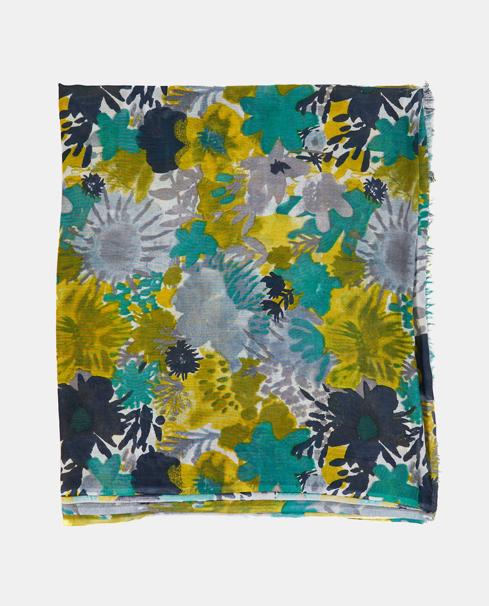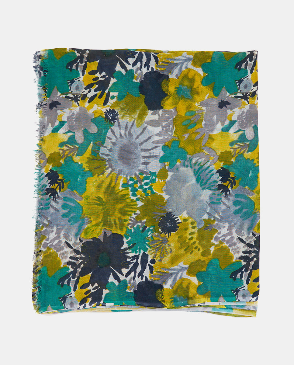 Pañuelo de mujer de viscosa, suave y ligero al tacto, con un delicado estampado floral. Un accesorio versátil y práctico, perfecto para todo tipo de ocasiones. Sus bordes deshilachados le dan un toque moderno y casual.