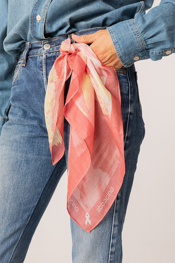 Rosa Seidenbandana, die speziell entworfen wurde, um die Unterstützung im Kampf gegen Brustkrebs zu fördern. Ein limitierter Editionsteil, für den wir mit jedem Kauf 3€ an die AECC (Spanische Vereinigung gegen Krebs) spenden.