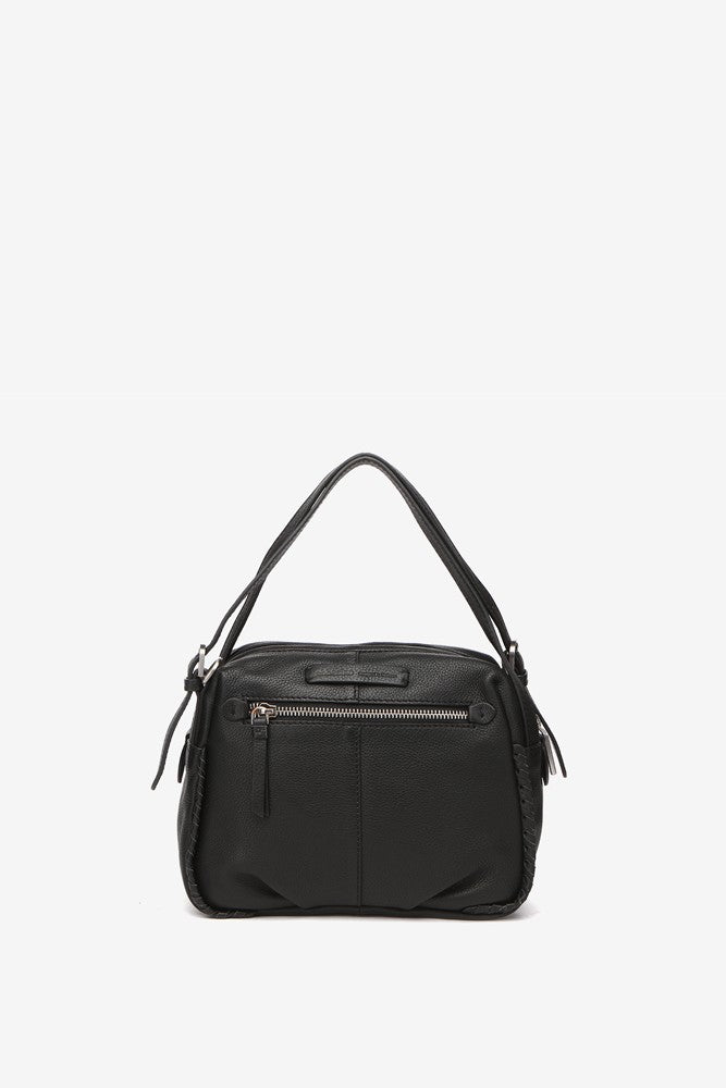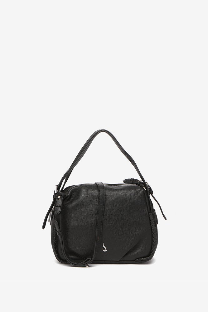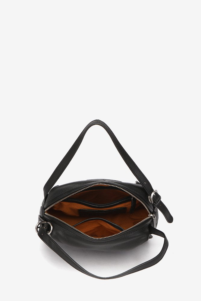 Schwarze Leder-Umhängetasche