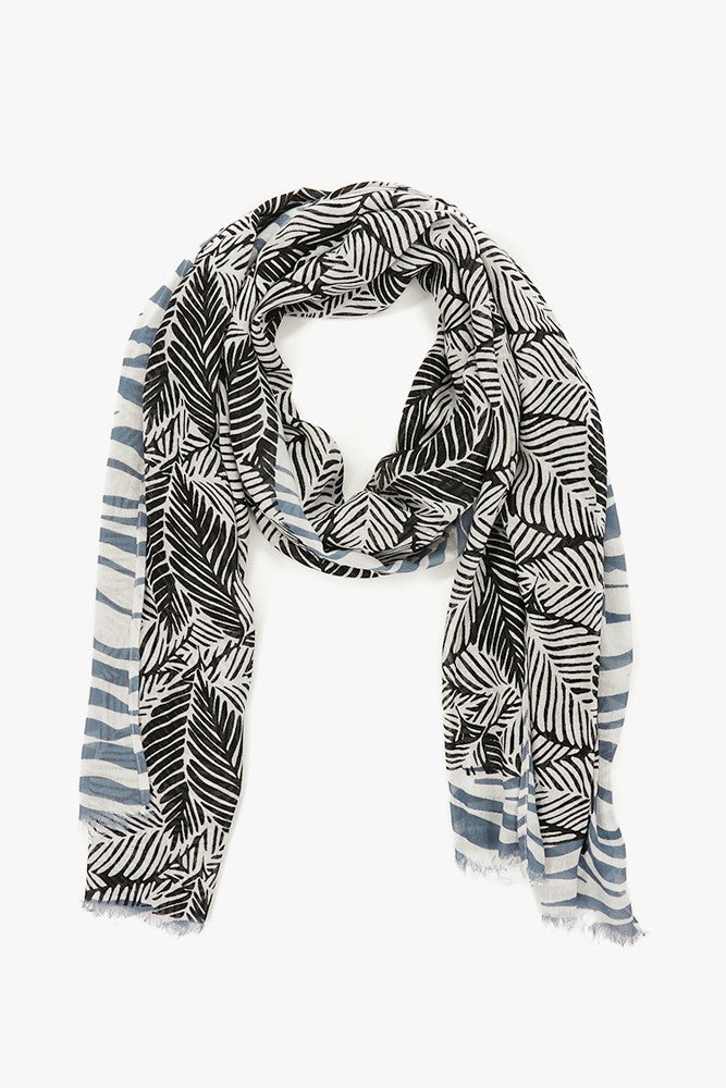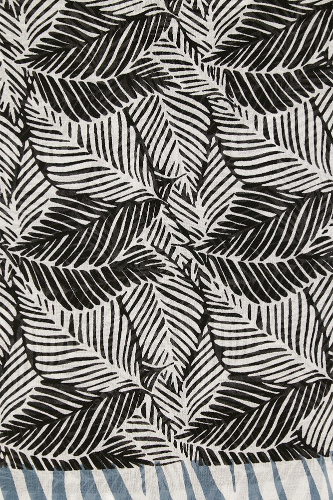 Tuch mit tropischem Muster in Schwarz und Weiß.