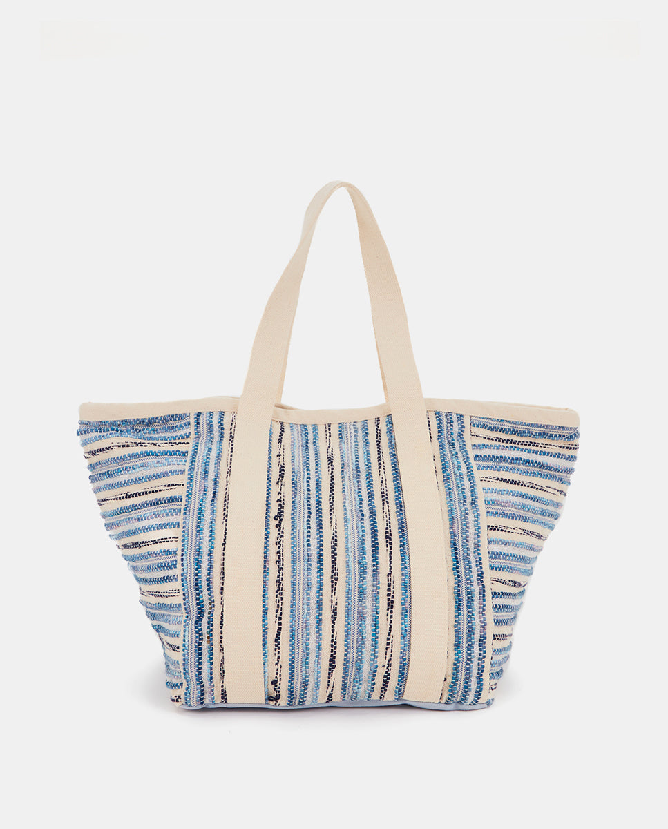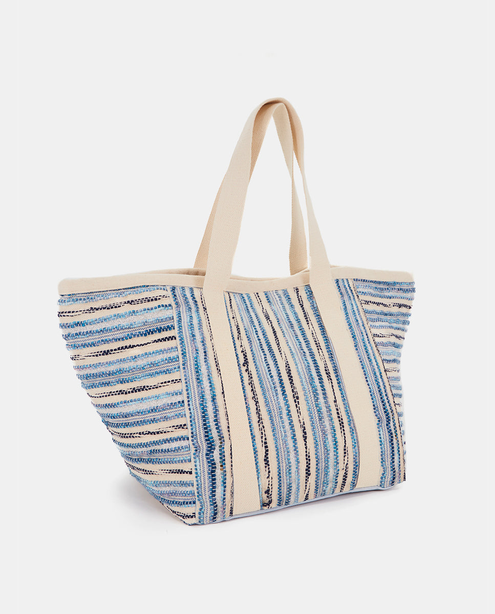 Strandtasche mit blauem Streifenmuster