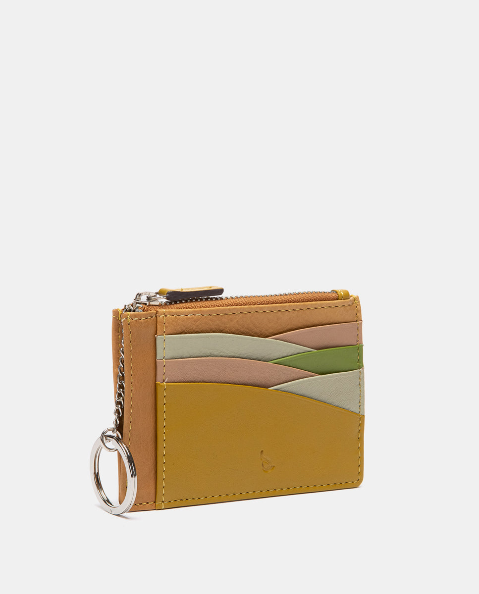 Kartenetui für Damen aus Leder mit einer auffälligen Kombination aus leuchtenden Farben, die für einen modernen und fröhlichen Touch sorgt. Seine Hauptmerkmale sind: