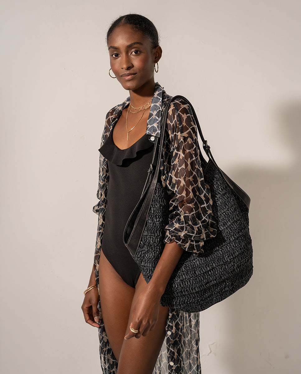 Sie können diesen Kaftan mit unseren Strandtaschen, Handtüchern oder unserer Kollektion kombinieren Bast.