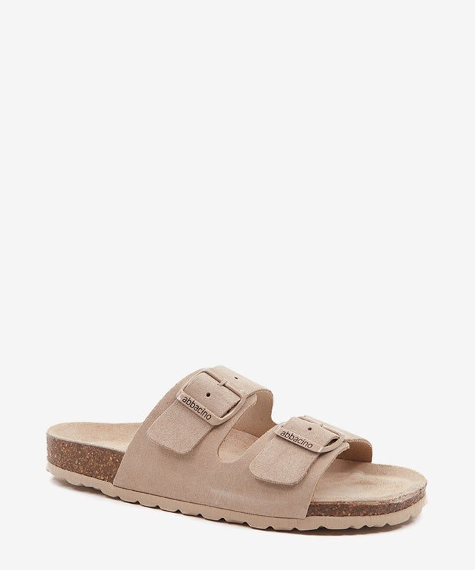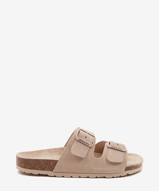 Women's flat sandal in beige suede