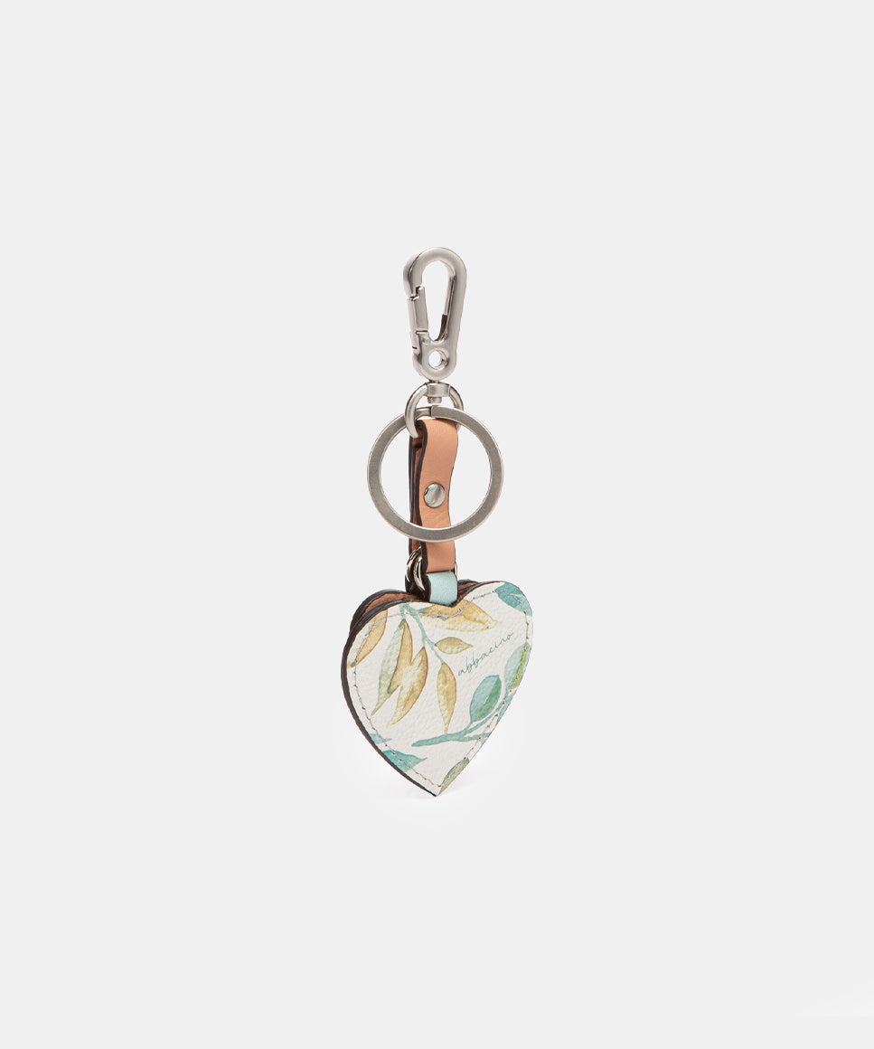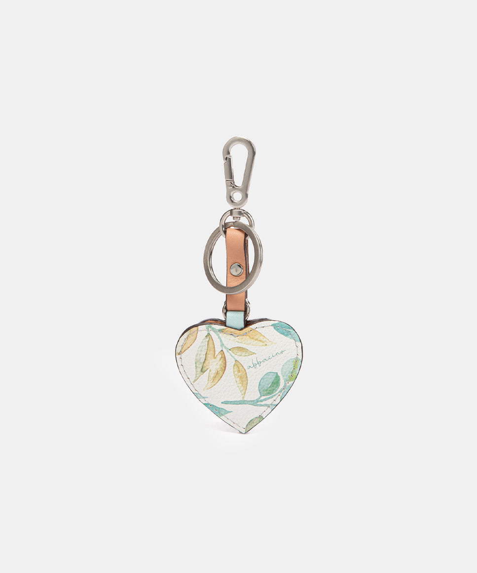 Green leather heart keychain