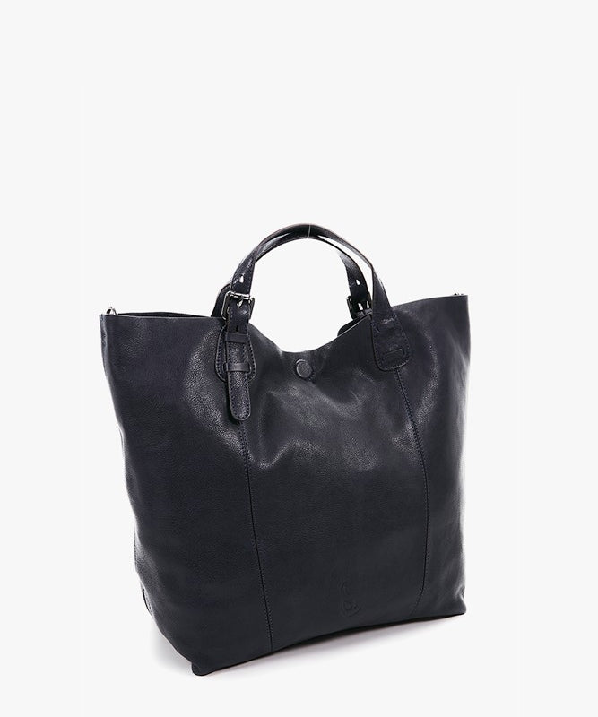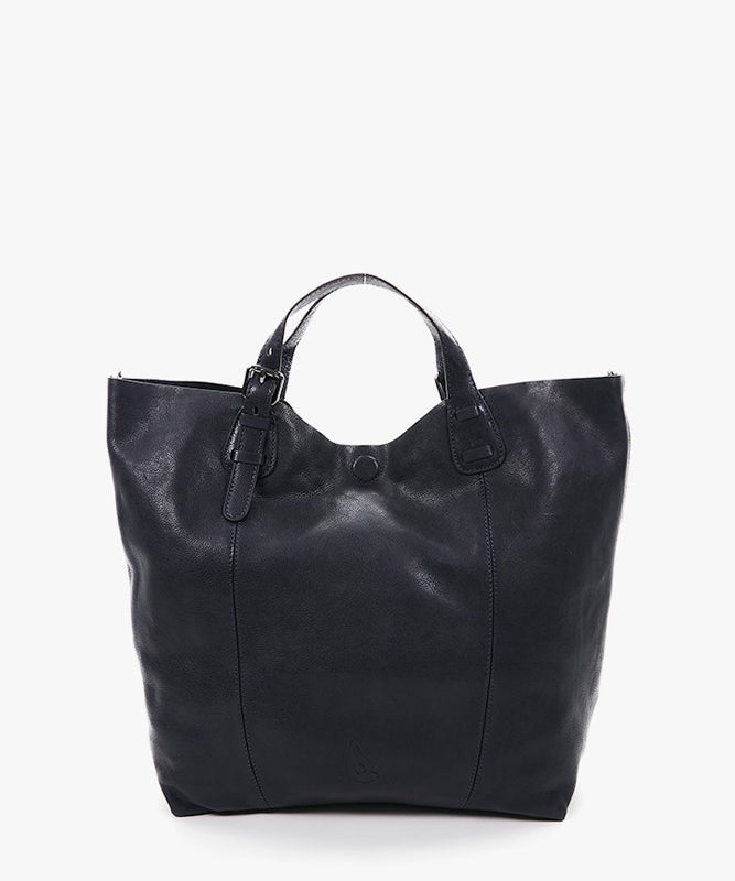 Large women's leather shopper bag in blue