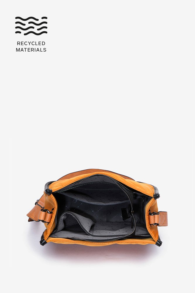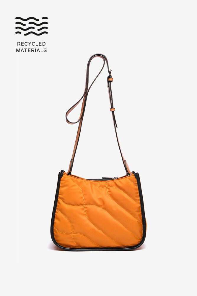 Women's crossbody bag made from recycled materials and with an original padded finish. We combine trend with sustainability by creating original and practical accessories, without compromising on fashion. This sporty design is perfect for everyday use thanks to its size and practicality: take it with you to the office, to an afternoon of shopping or for a walk with the family.