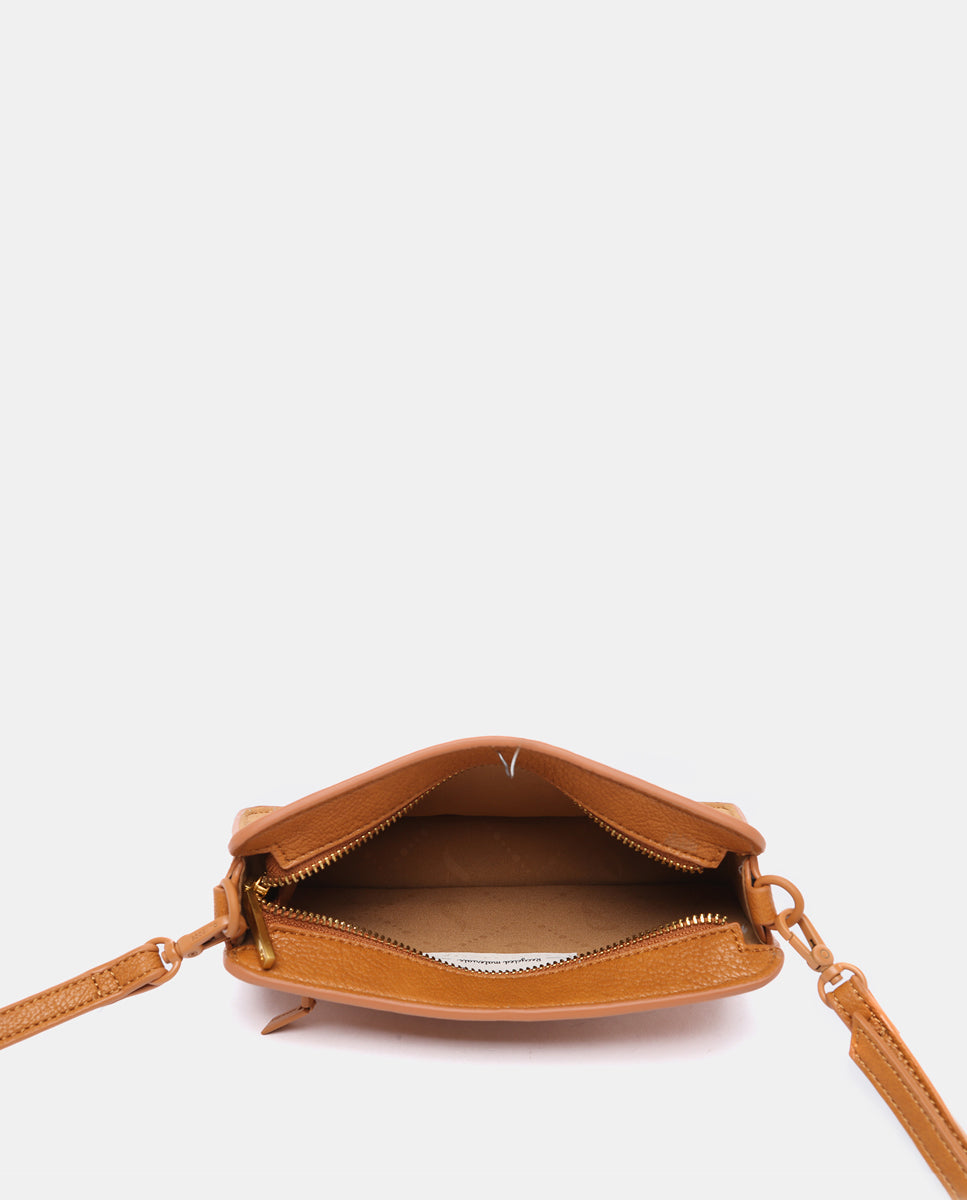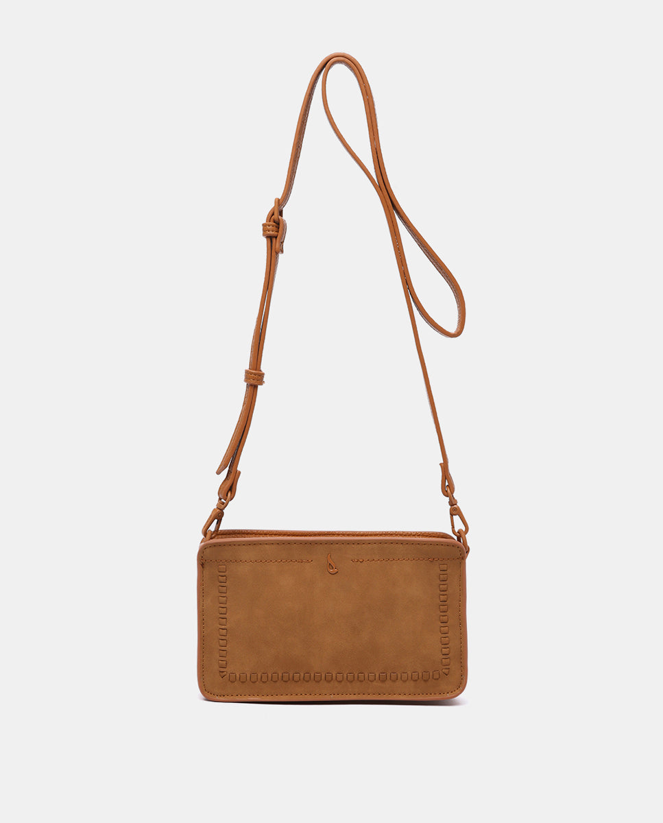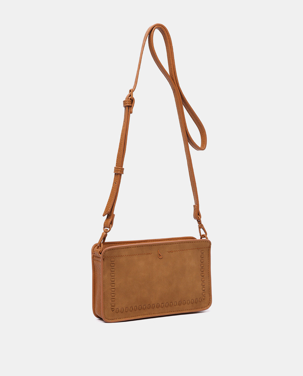 Women's crossbody bag made from recycled materials. A model that combines different textures, simple lines, neutral colors, and classic design. The perfect option for autumn and winter days. Its main features are: