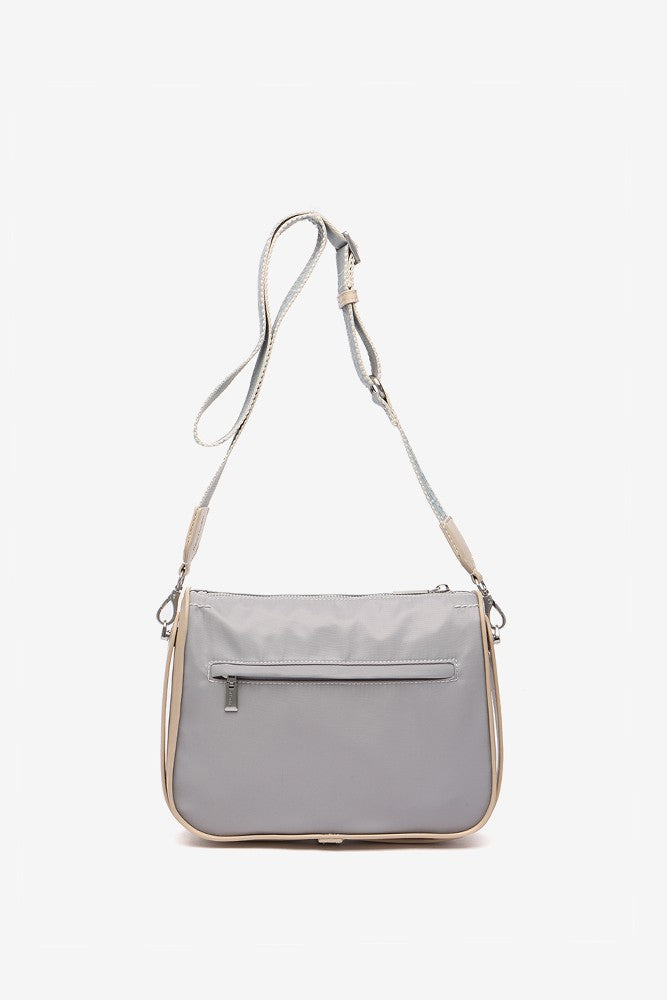 Women's crossbody bag crafted with recycled materials and featuring a subtle satin finish inherent to its fabric. An all-terrain, casual-style model ideal for daily use. Its main features include: