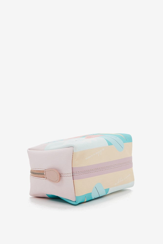 Large women's cosmetic bag made from premium leather with an original and eye-catching bohemian-inspired floral print. A fun and original model whose colours represent this season's on-trend tones, the perfect choice to add a touch of fantasy to your looks!