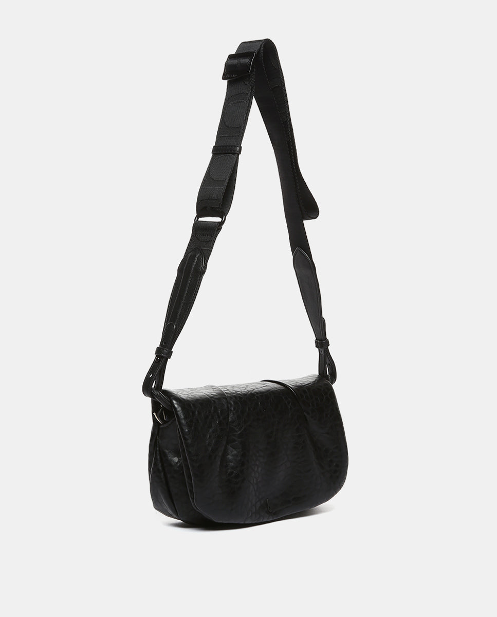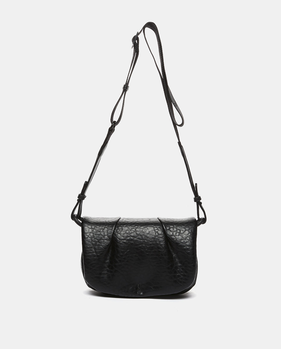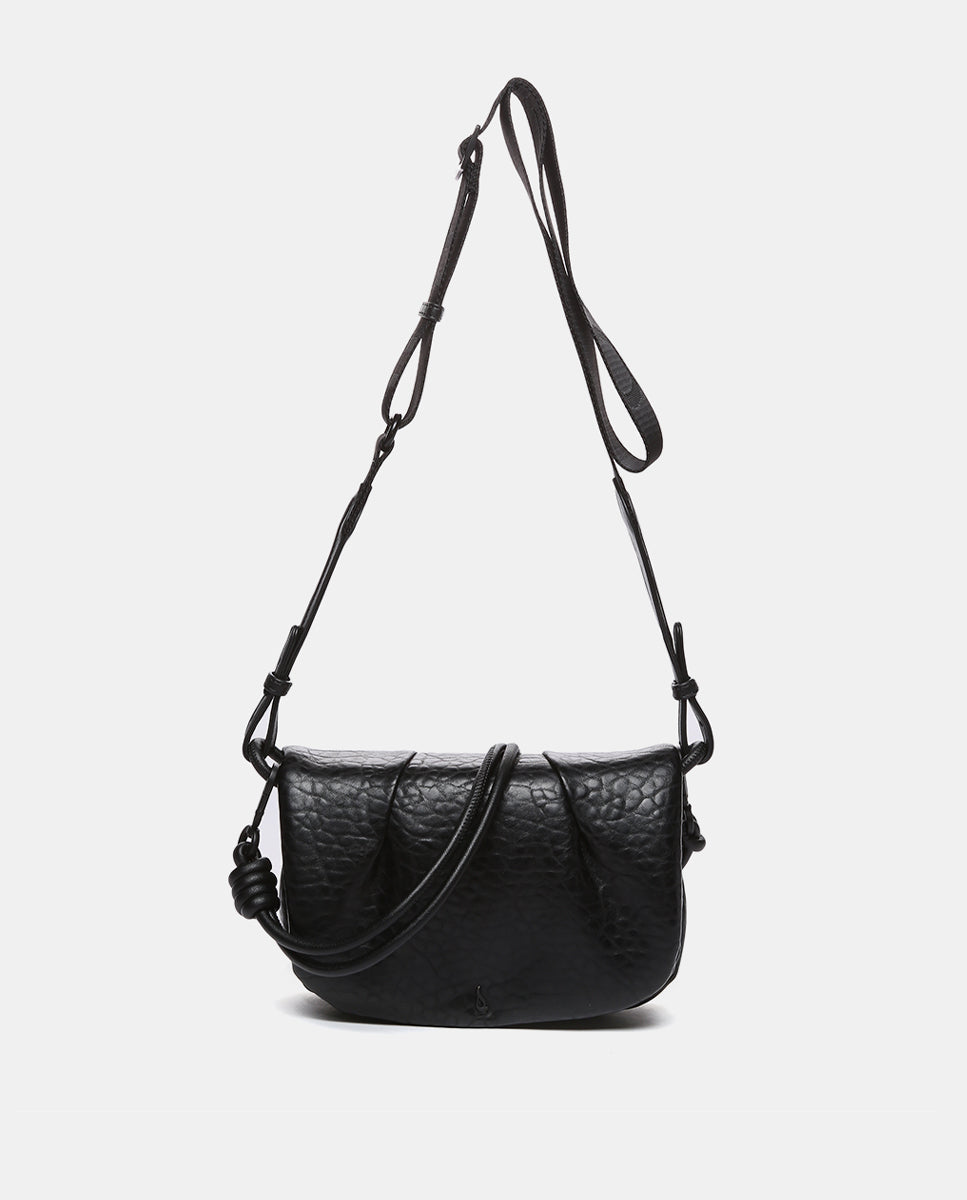 Women's crossbody bag made from recycled materials. A design that features a lovely gathered front and the rustic texture of its material. Its main features are: