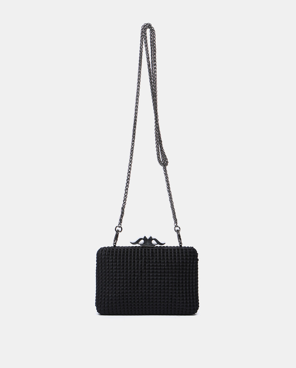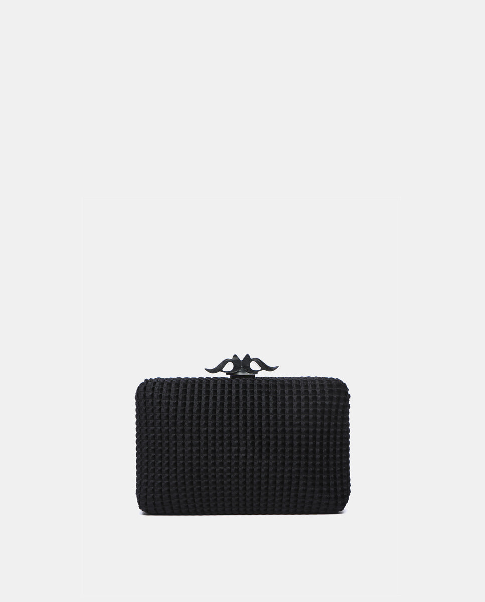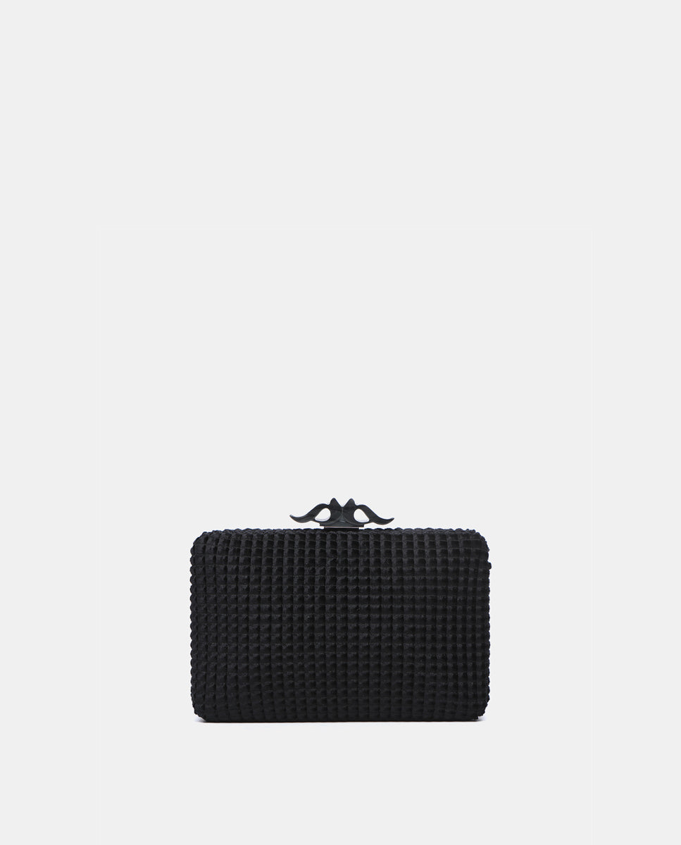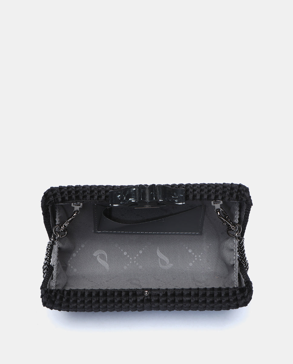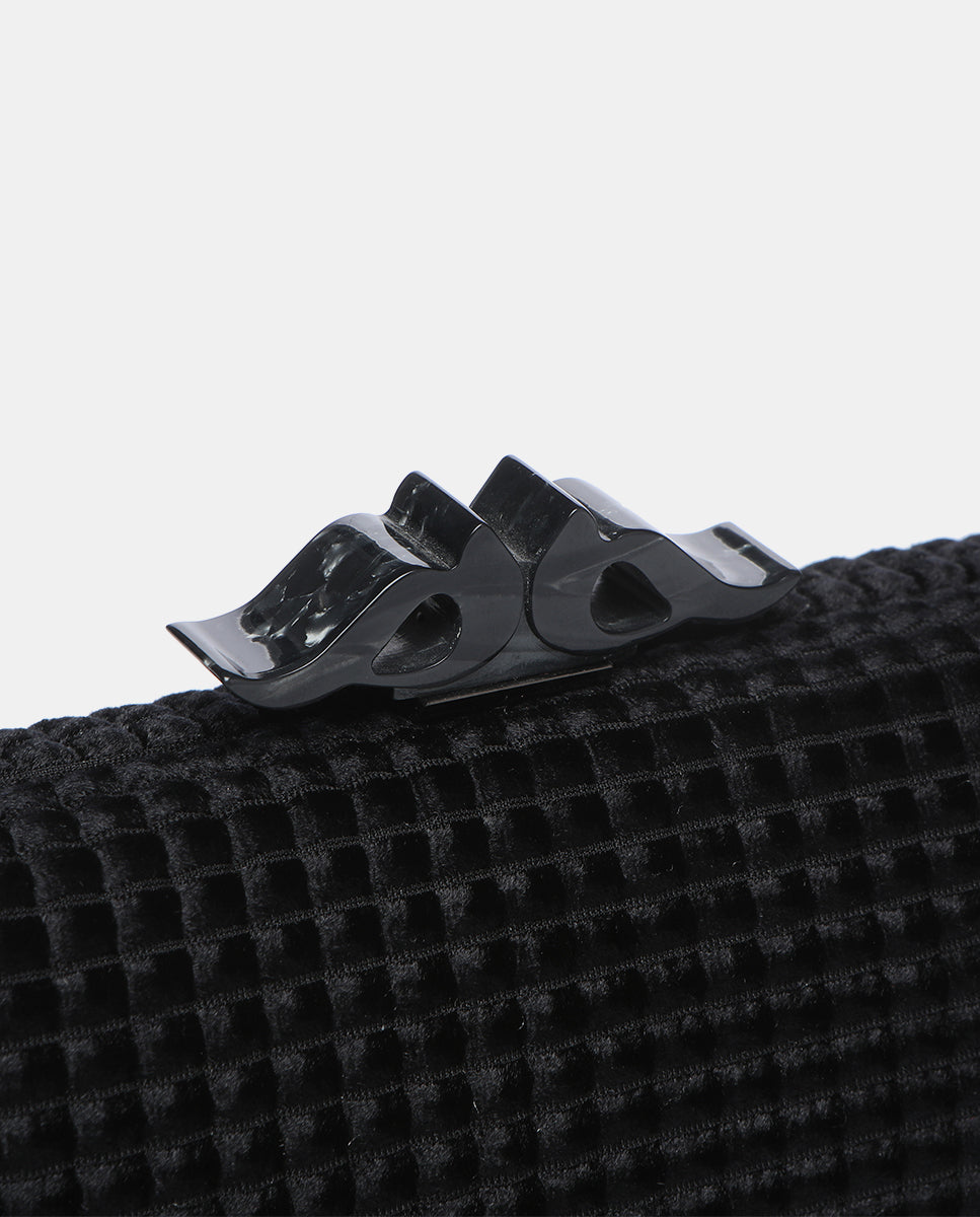 Square velvet party clutch with geometric print and 3D closure with Abbacino logo. A special handbag for events in which to carry your essentials. Its main features are: