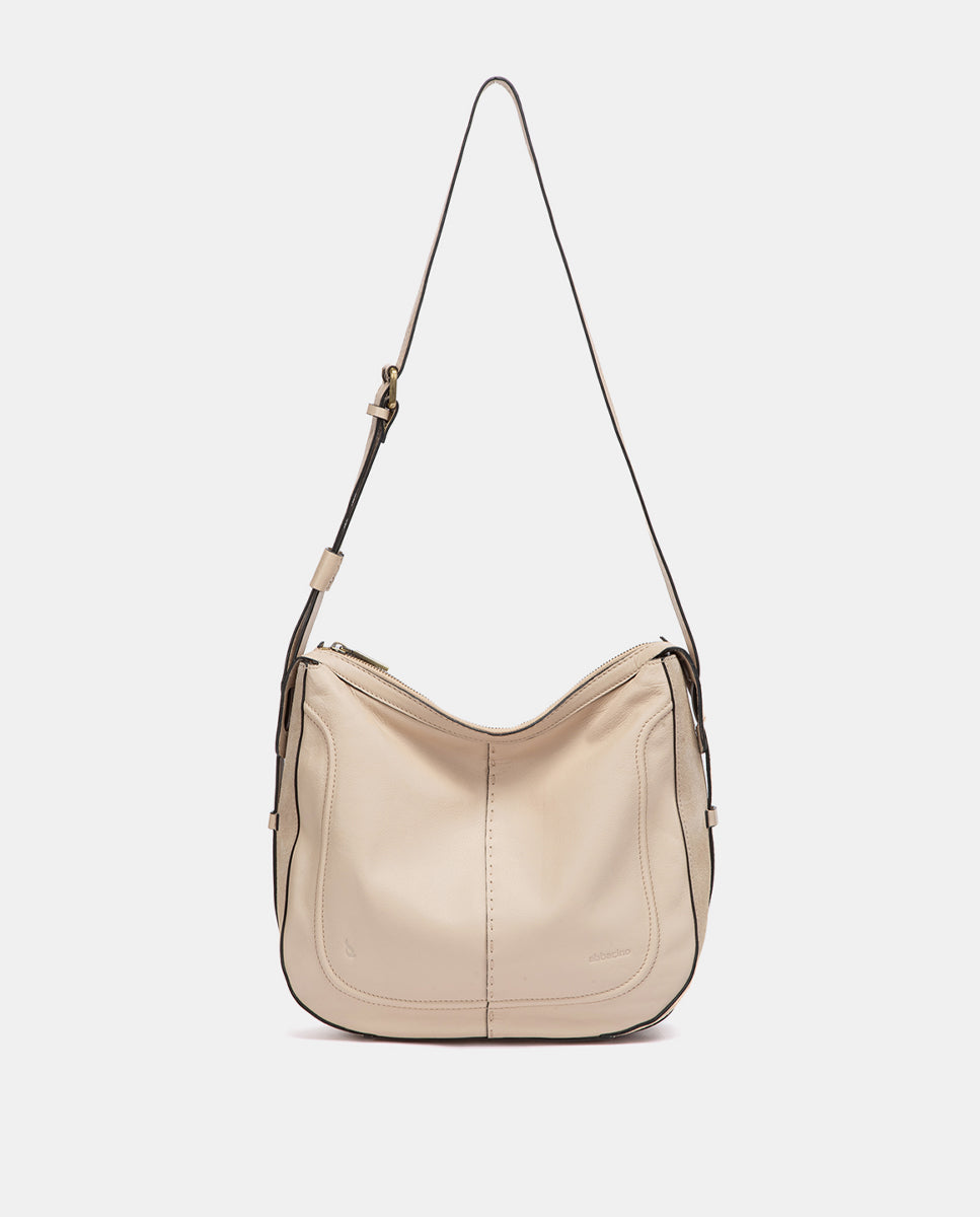 Beige leather shoulder bag
