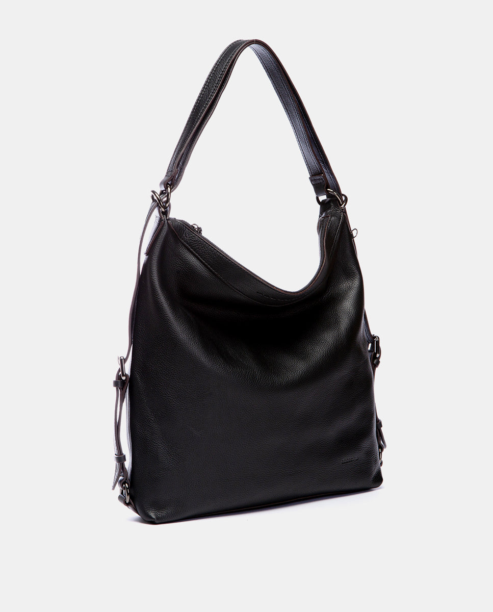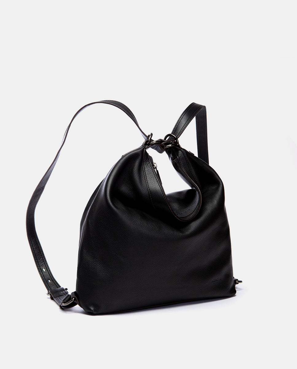 Bolso de hombro convertible a mochila elaborado en piel Premium con un diseño amplio, fluido y muy práctico. Sus principales características son: