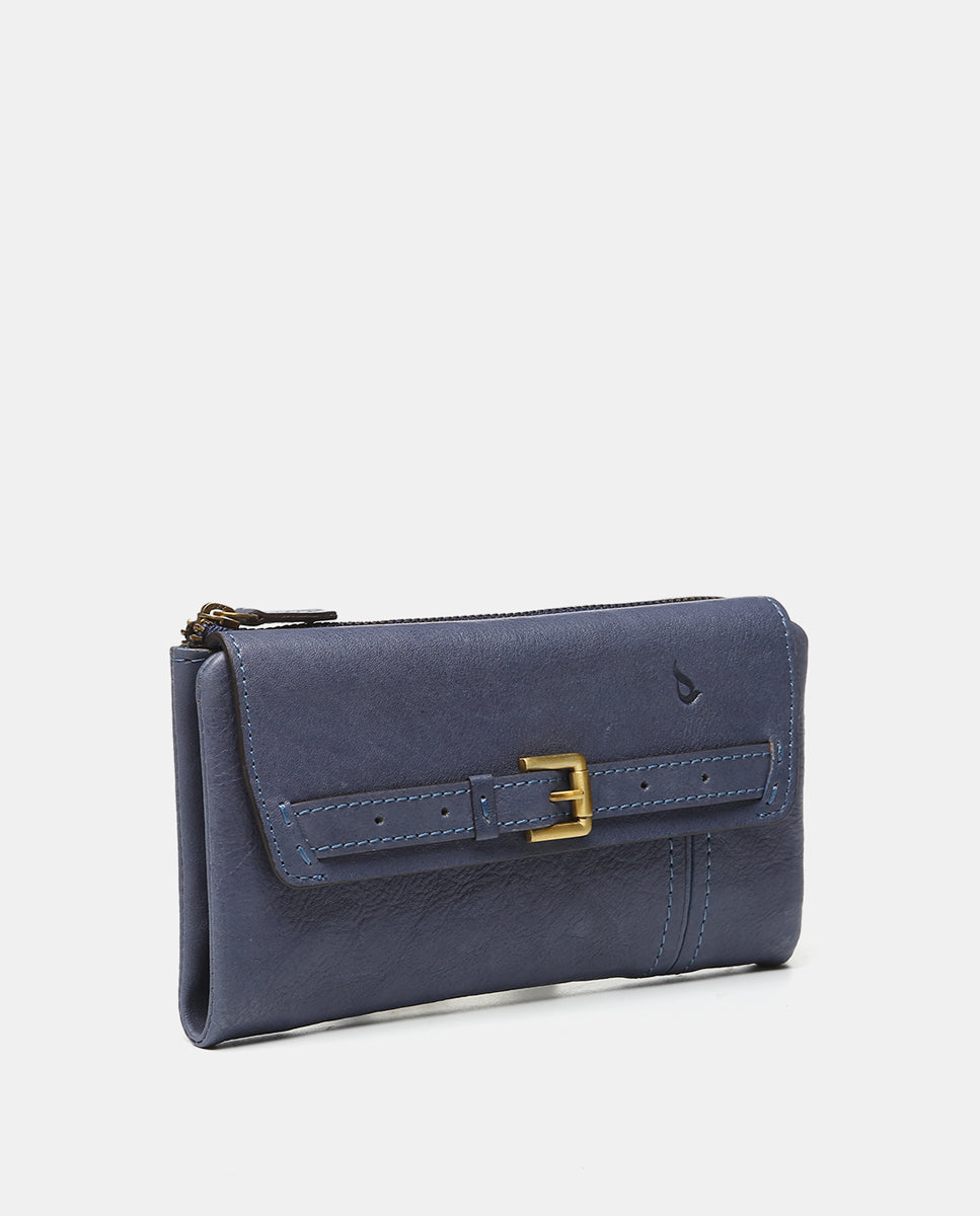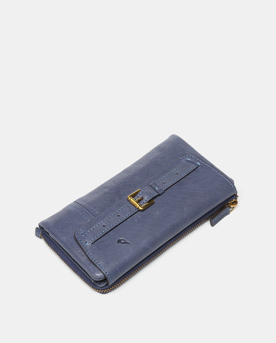 Large women's leather wallet with a design that stands out for its front flap closure, which features a decorative gold buckle. Elegant and functional, it's ideal for those looking for organization and style. Its main features include: