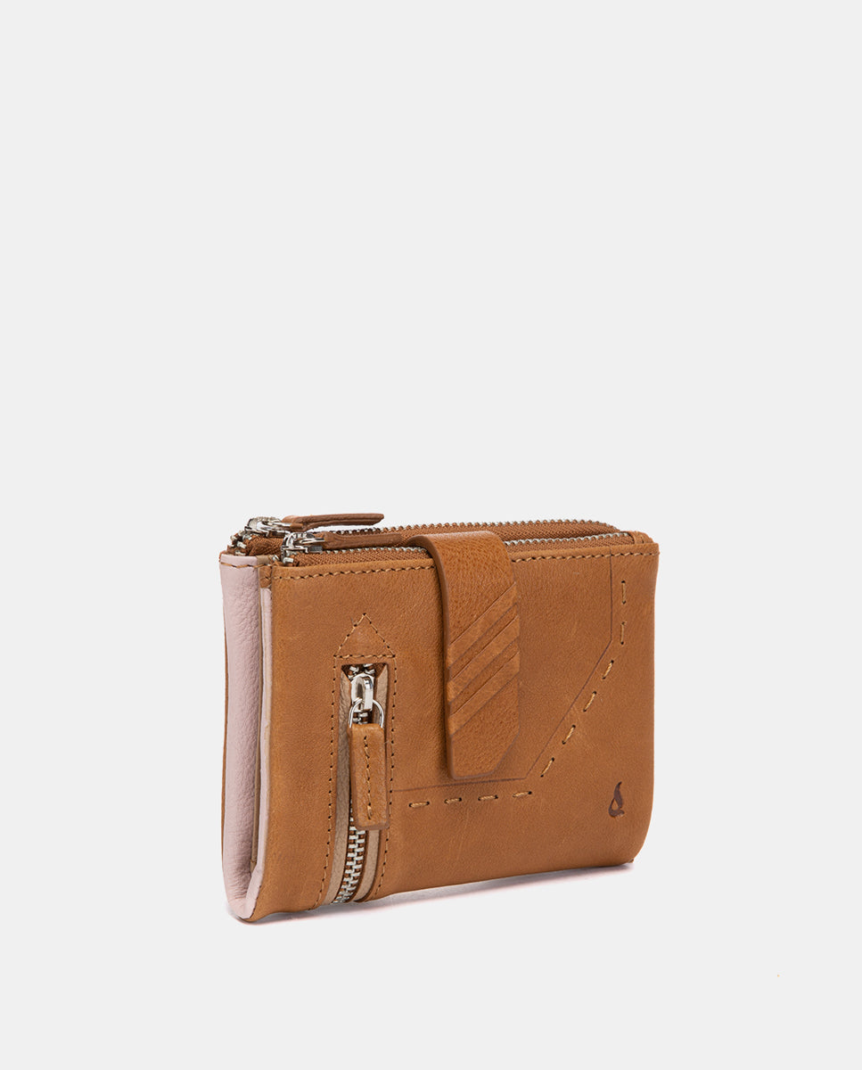 Small leather wallet with a soft texture and natural grain finish. Its main features are:
