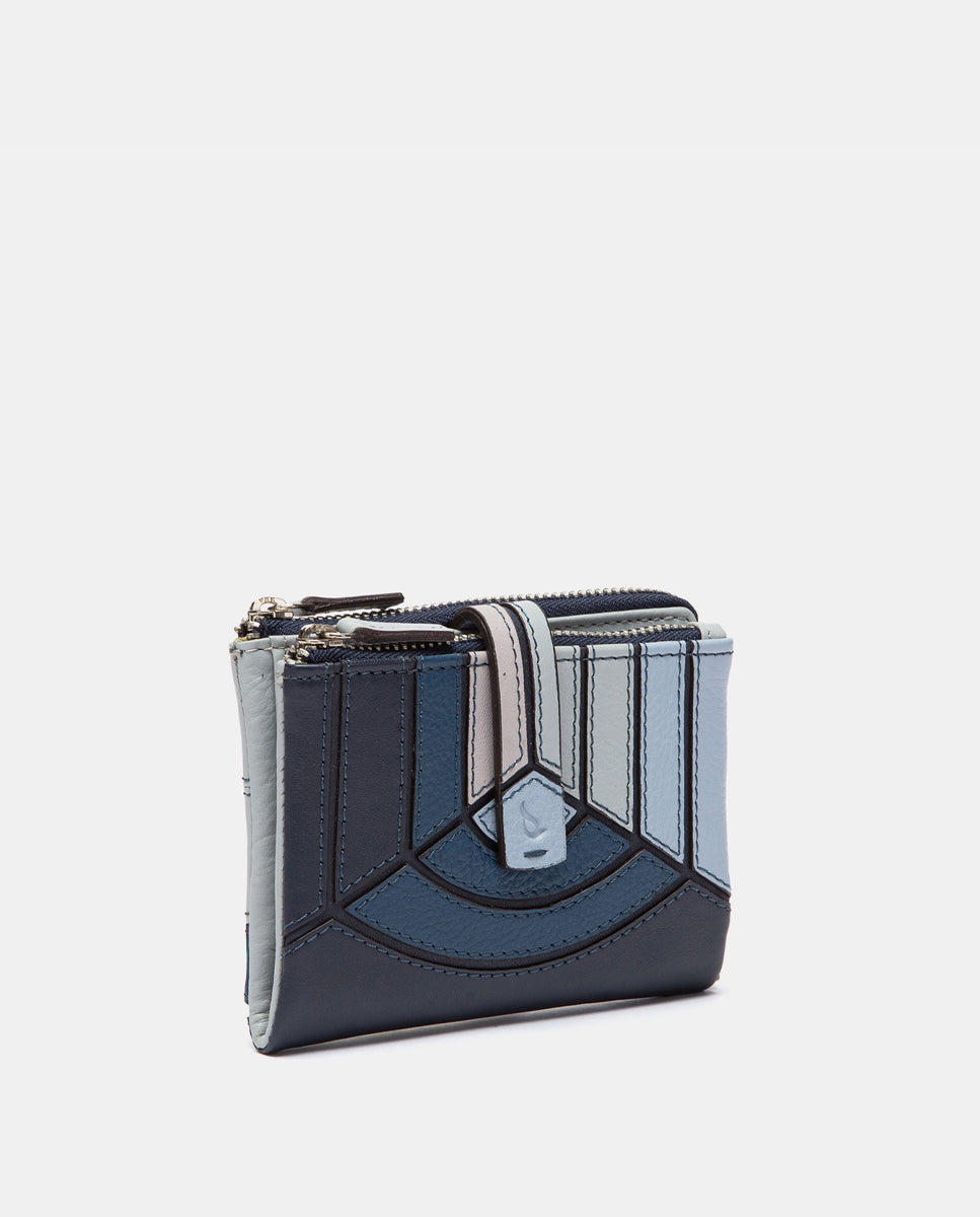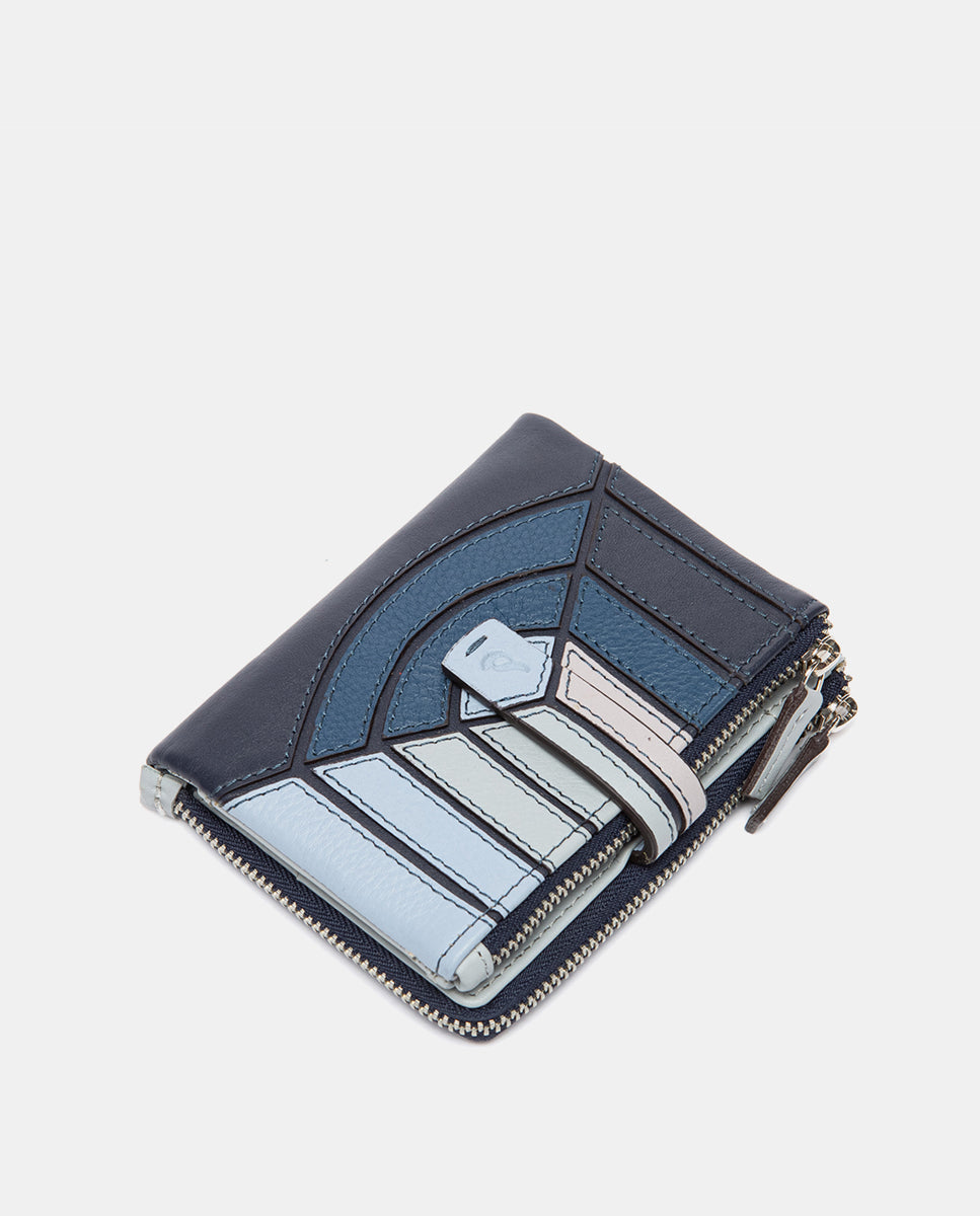 Cartera pequeña de piel con diseño de patchwork en cortes geométricos, cuidadosamente ensamblados para crear una composición única y artesanal. Sus principales características son: