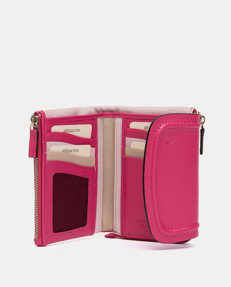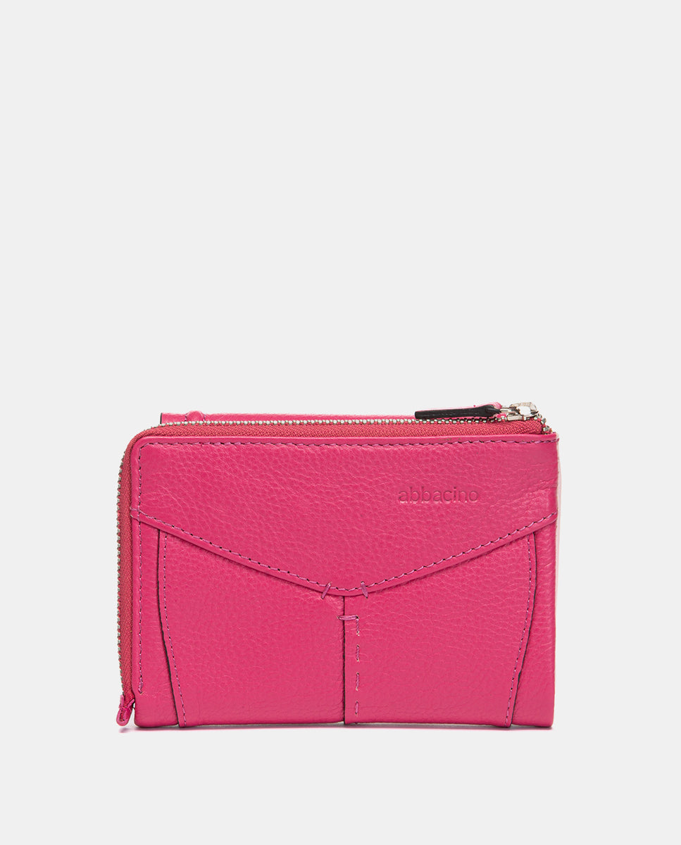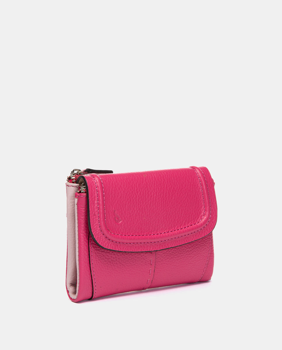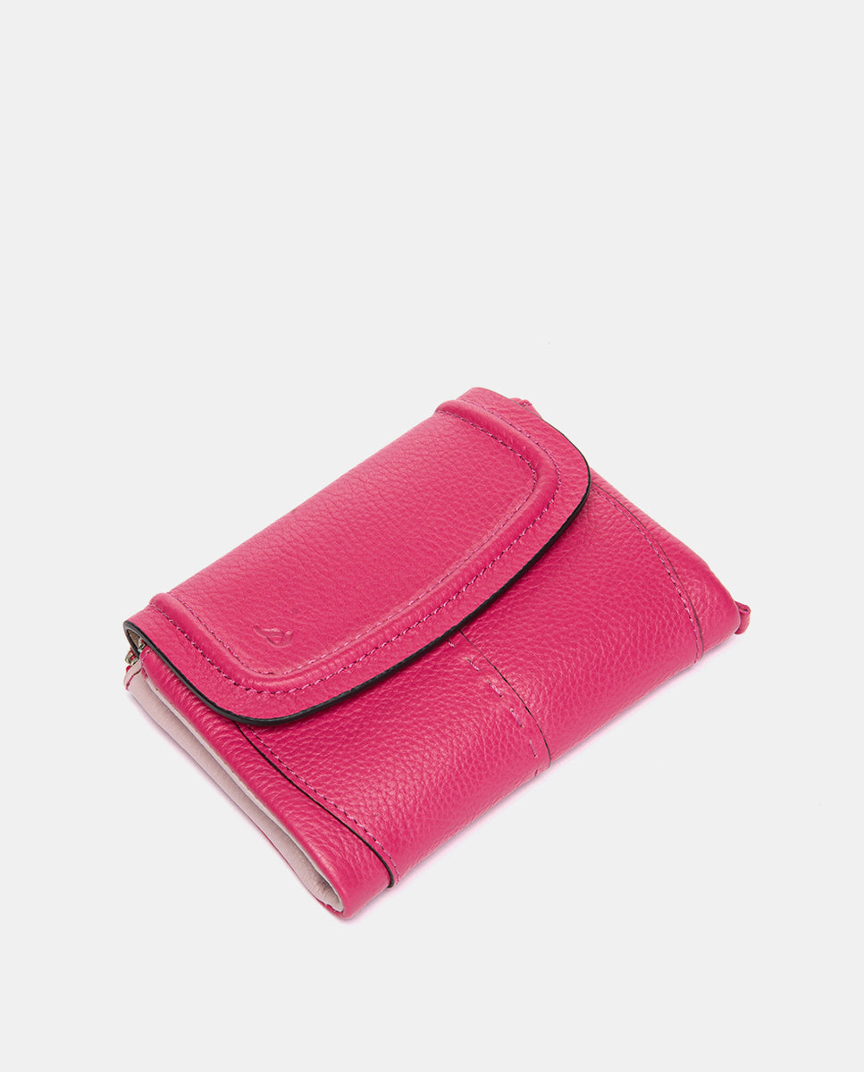 Cartera de piel pequeña con textura suave y acabado de grano natural. Sus principales características son: