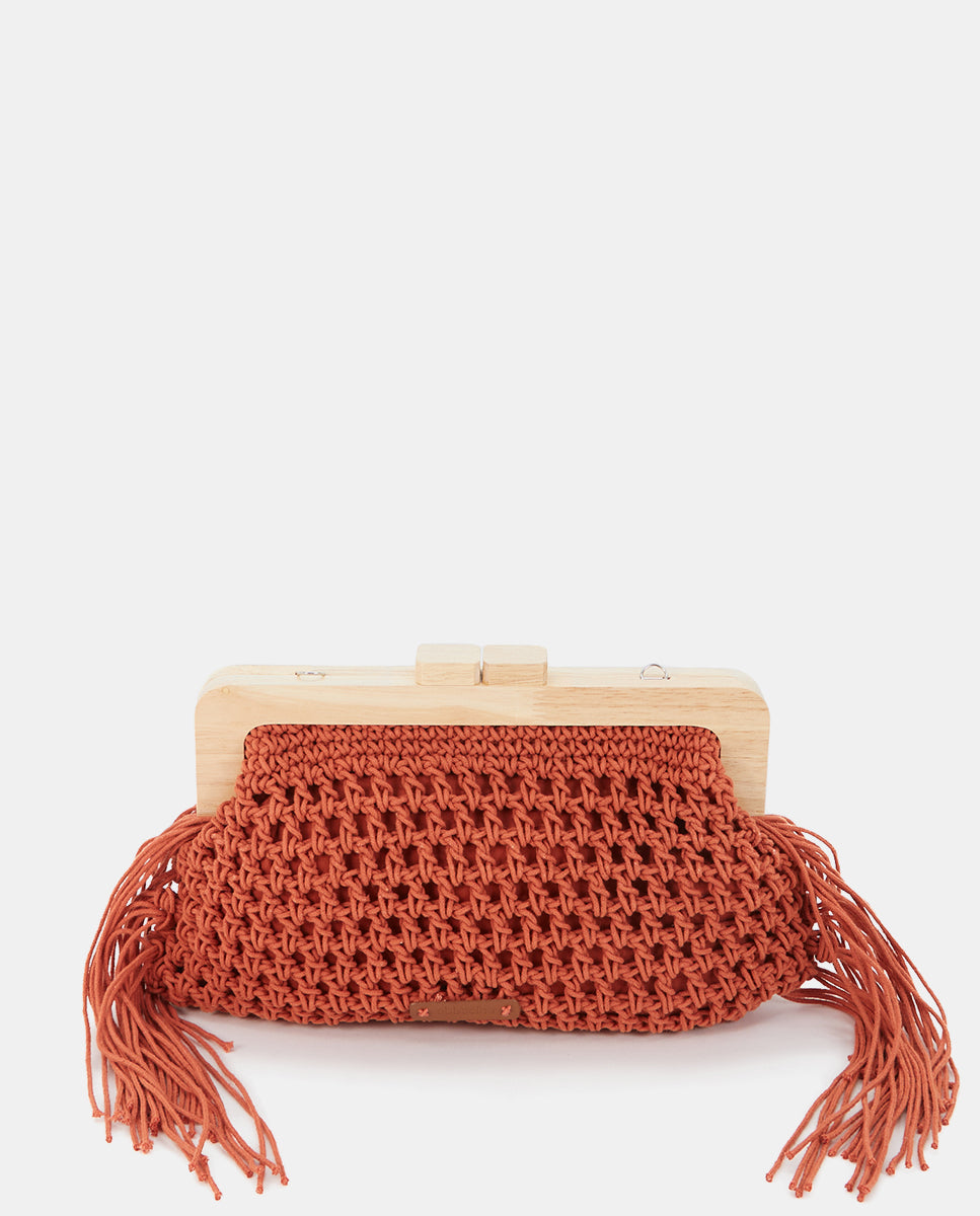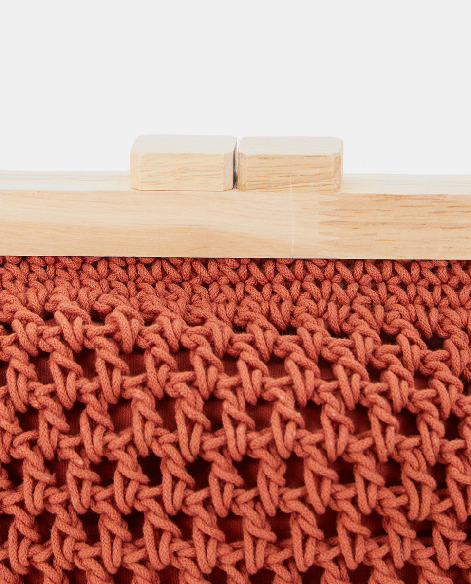Orange macramé clutch