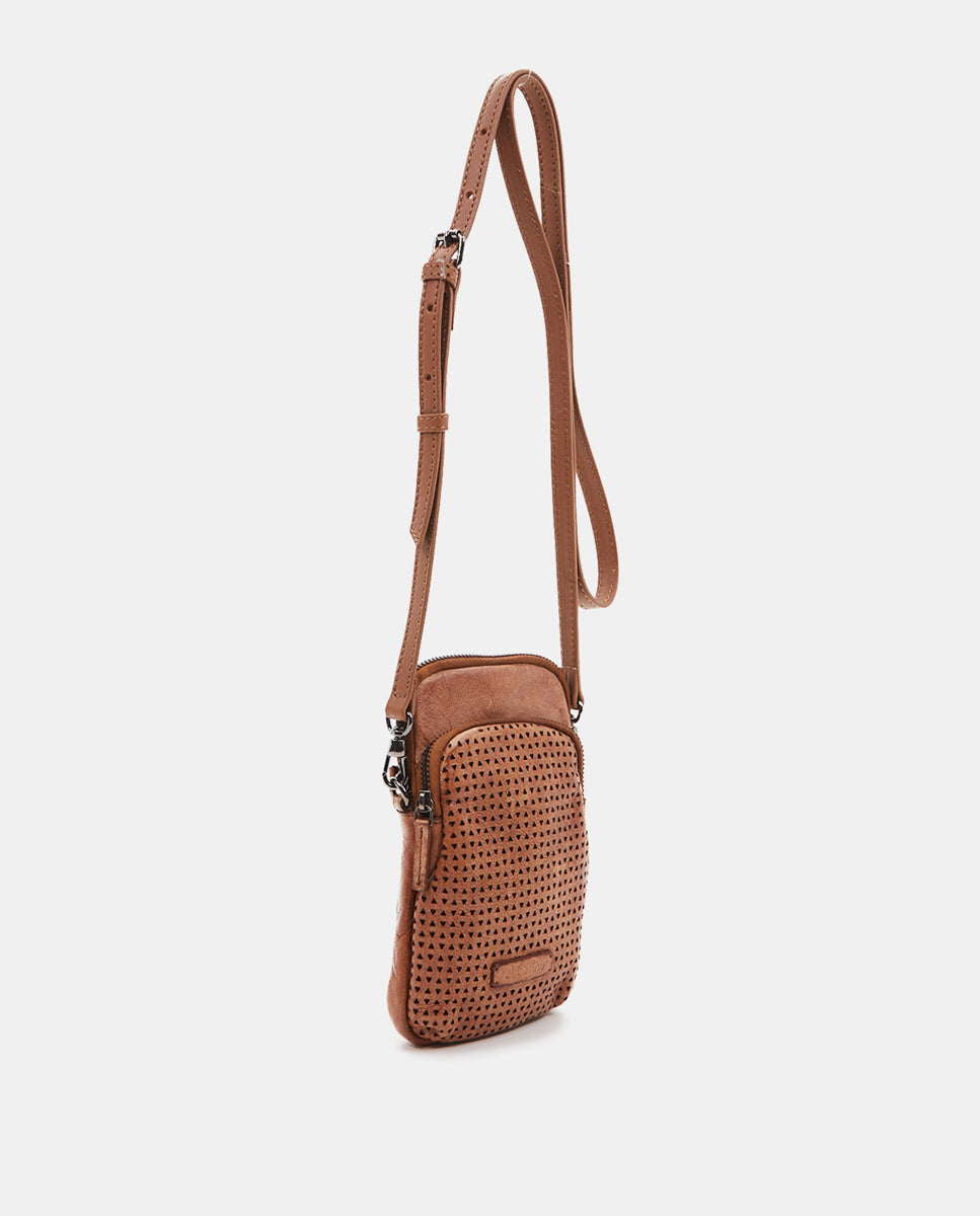 Women's mobile phone bag made of die-cut leather. A very original design with a beautiful washed effect, perfect for spring and summer days. This format is super practical to carry your essentials always with you without taking up much space.