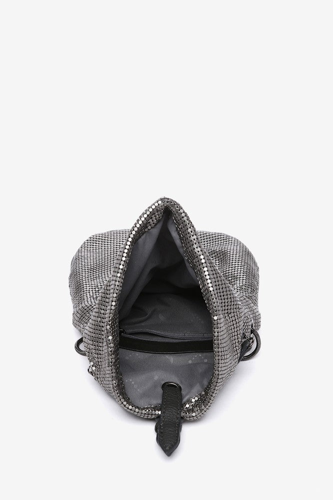 An original and daring party bag that will make you shine wherever you go. This model is an ideal option for creating unique looks that will not go unnoticed. A half-moon design made with metallic mesh, ideal for special occasions.