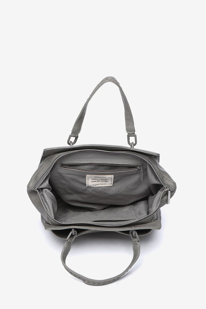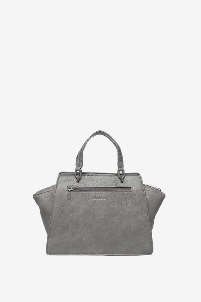 Large women's handbag made from recycled materials. A model that combines different textures, simple lines, neutral colors, and classic design. Its main features are: