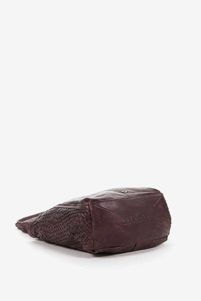 Women's leather hobo bag with braiding in brown