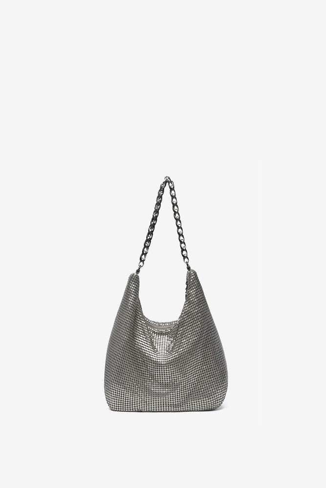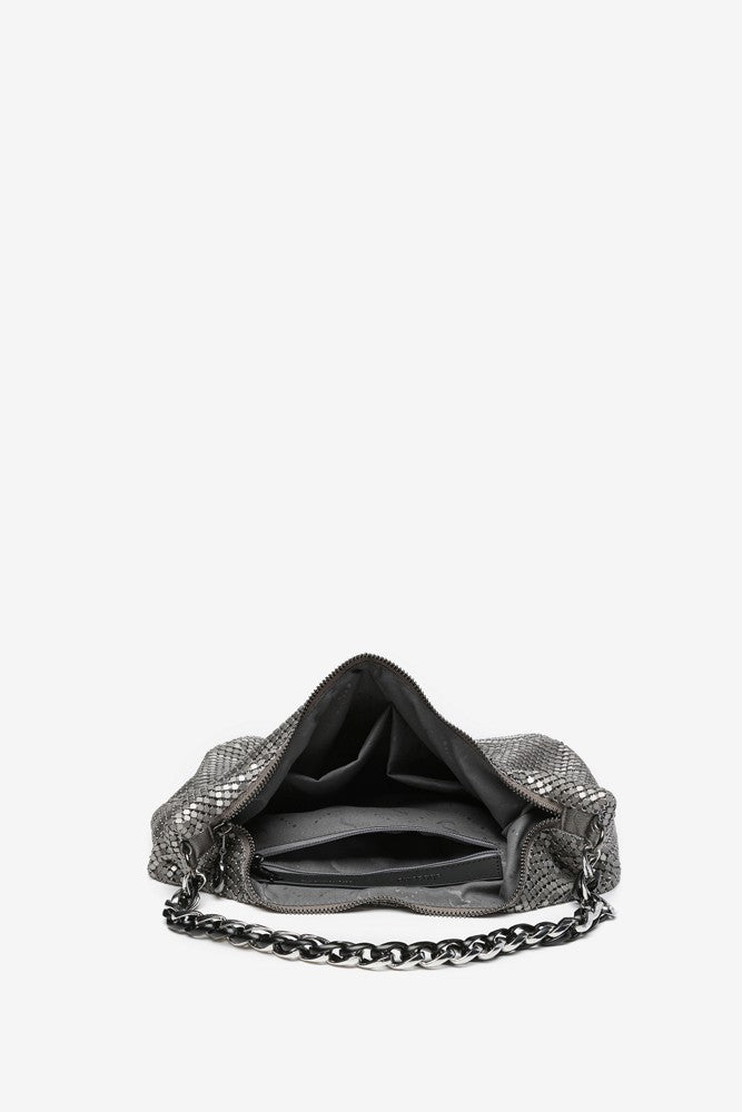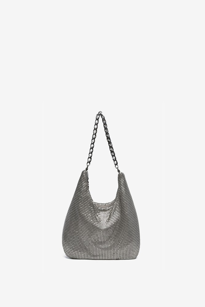 Women's hobo bag in metallic mesh. A design to shine wherever you go, perfect for day or night, it is the ideal choice for creating unique looks.